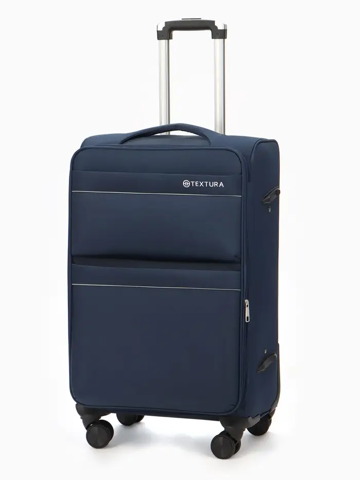 Чемодан 24",Текст,42*26*68,отд на молнии,2 нар/карм, увелич,код замок,4 колеса, синий