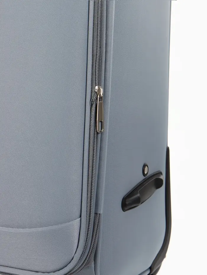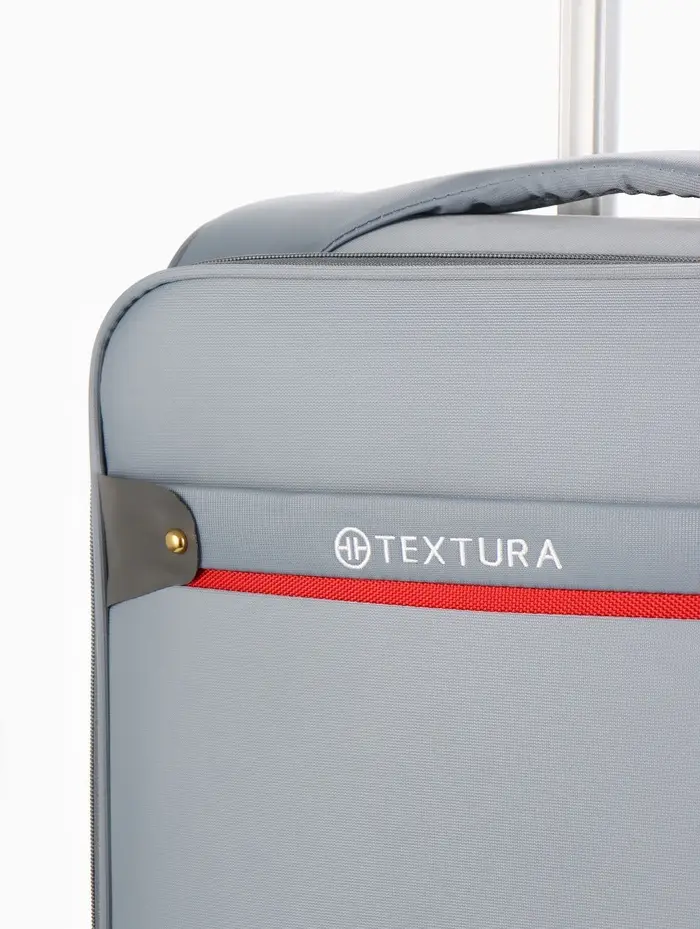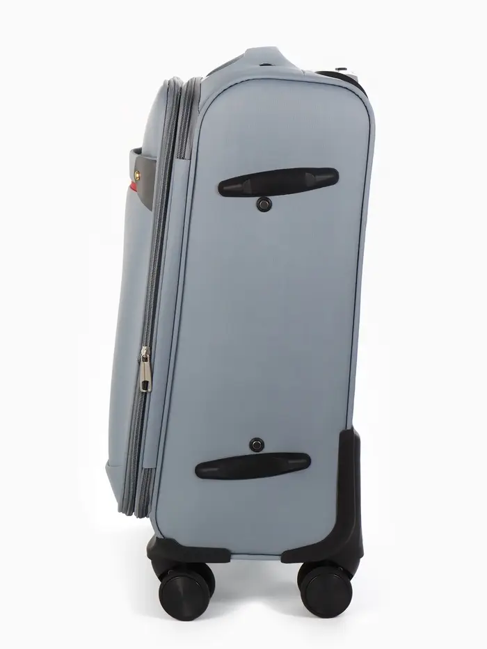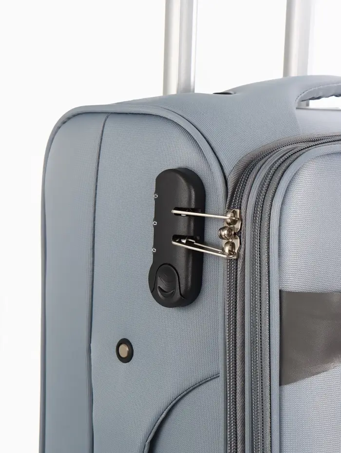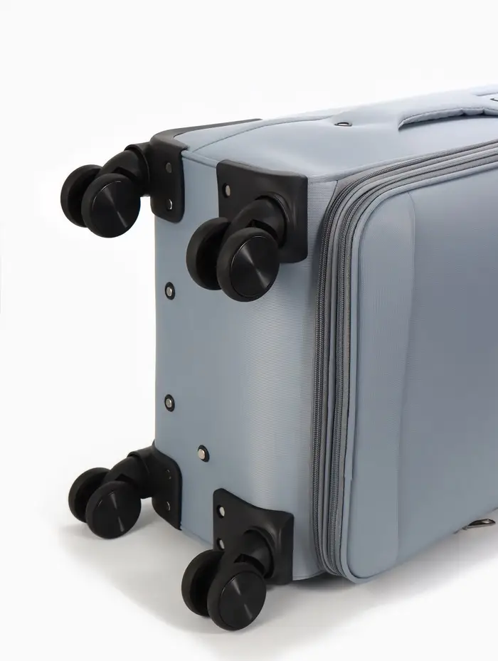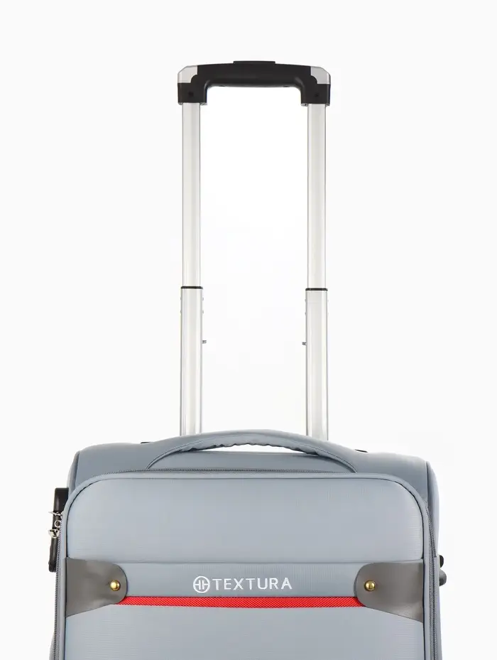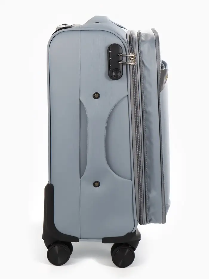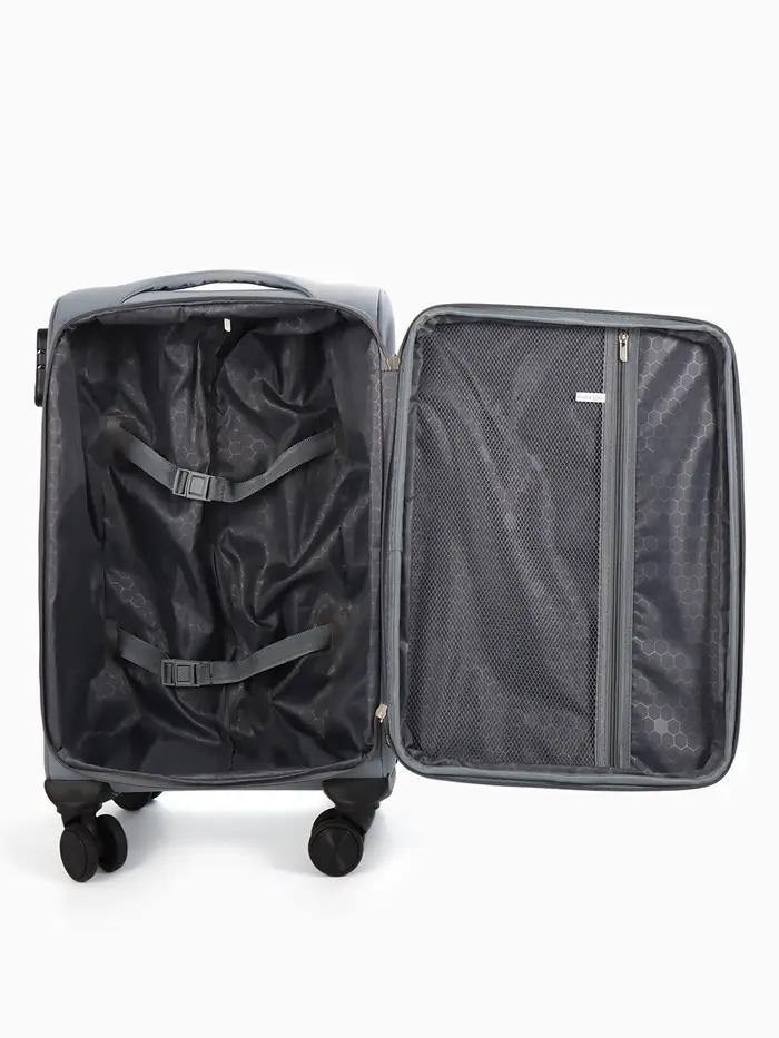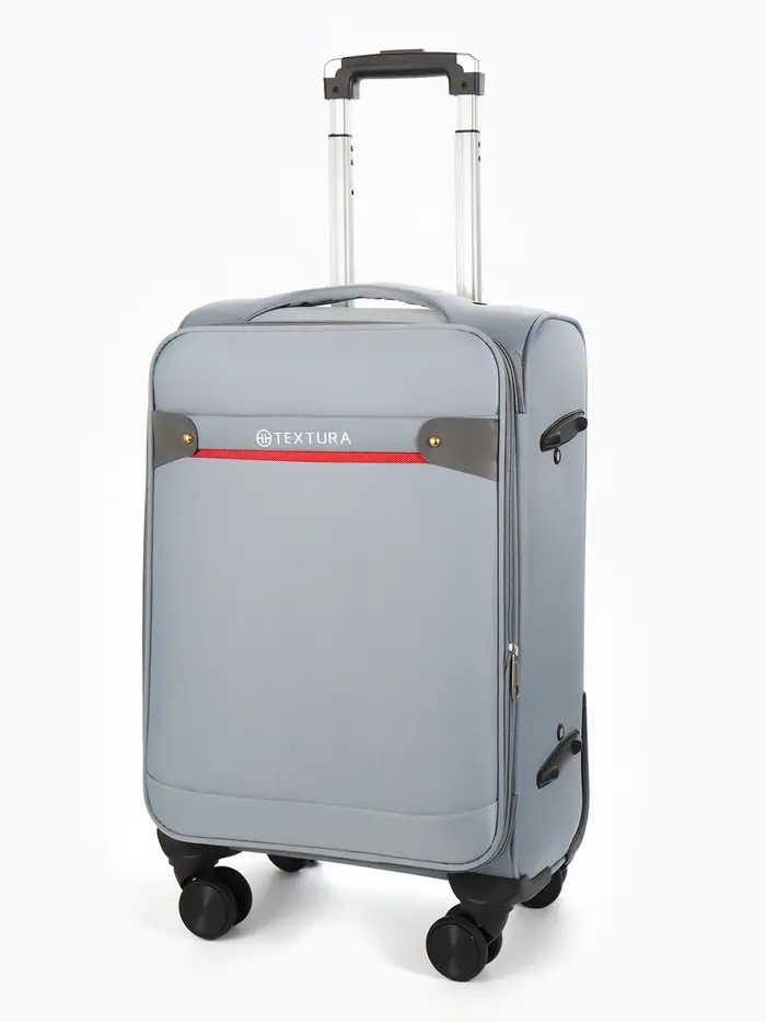 Чемодан 20",Текст,36*25*58,отд на молнии,1 нар/карм, увелич,код замок,4 колеса, т.серый