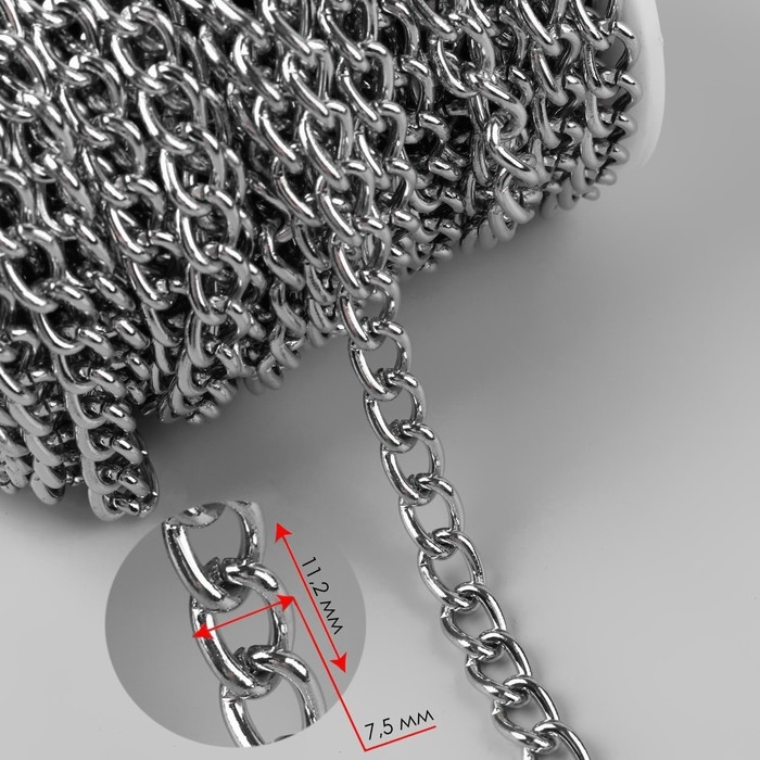 Цепочка для сумки, железная, 7 × 11 мм, 10 ± 0,5 м, цвет серебряный