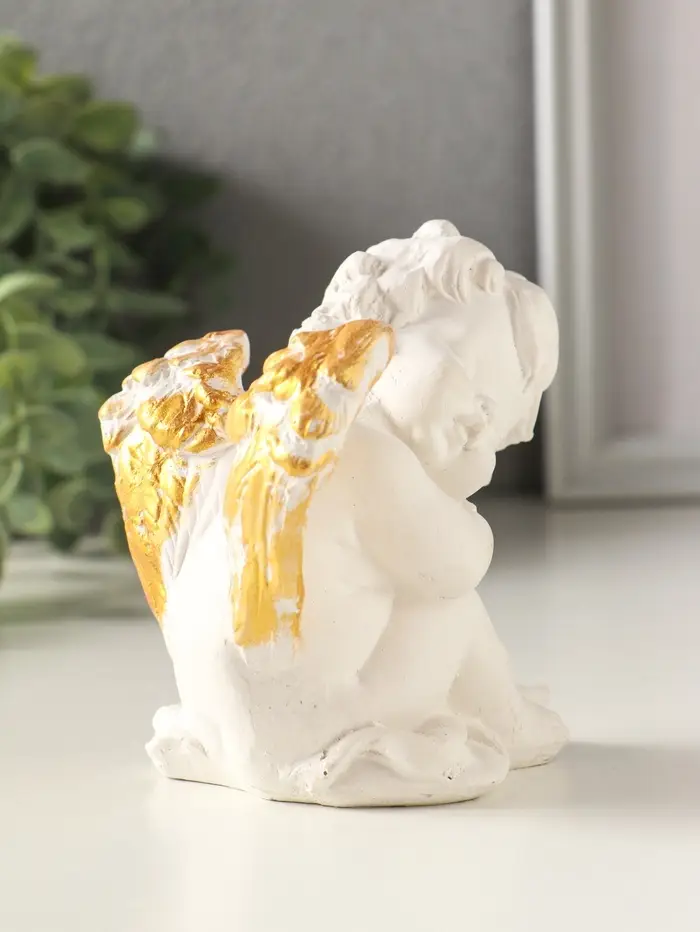 Фигурка гипс «Ангел спит», 10×8×7 см, белый с позолотой