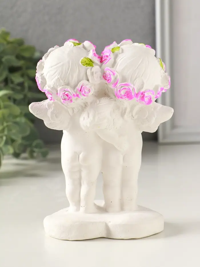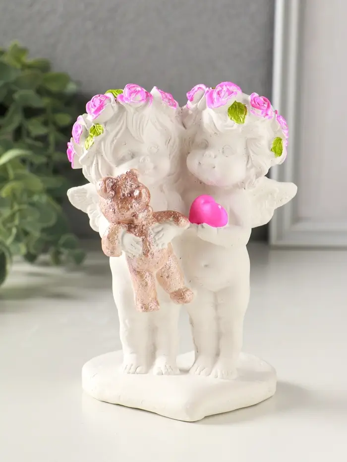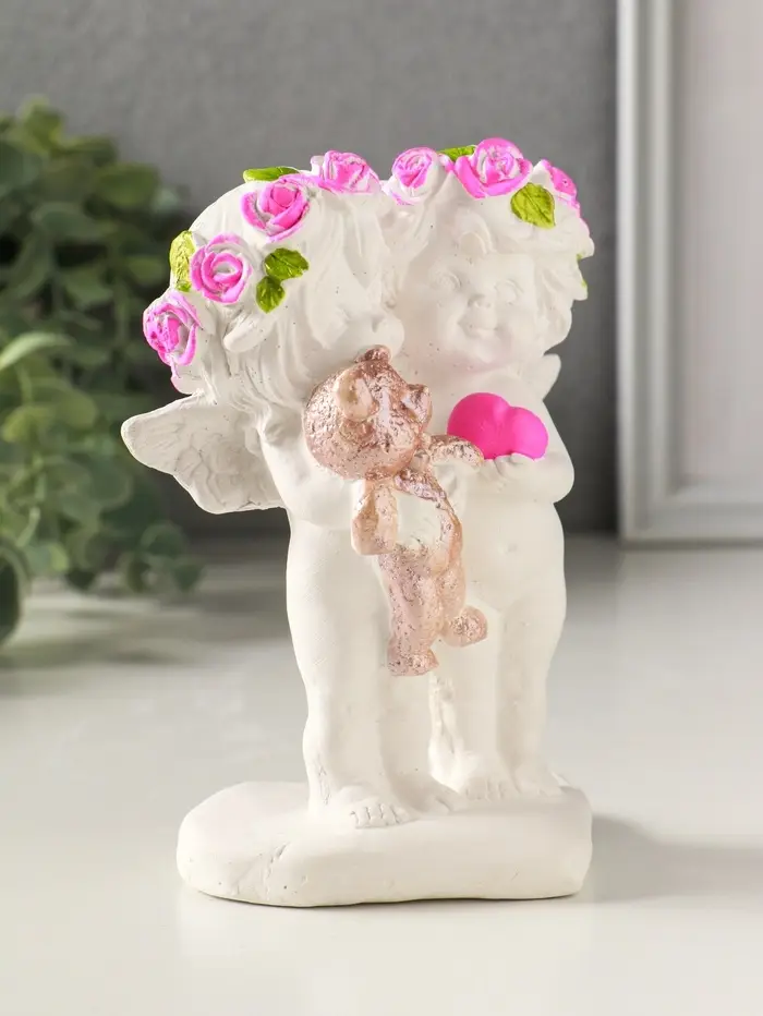 Фигурка гипс «Ангелочки с медведем», 13×7×9 см, белый с росписью
