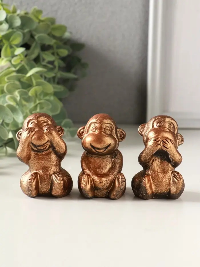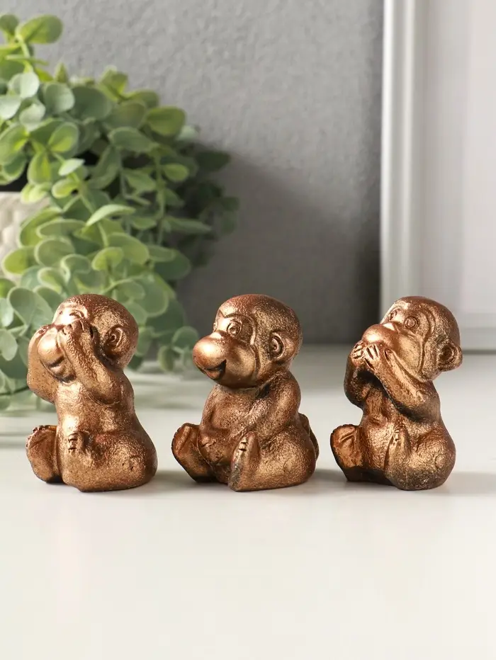 Набор фигурок гипс «Обезьянки ничего не вижу не слышу не скажу», 4 шт., 6 см, под бронзу