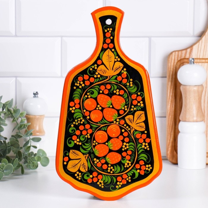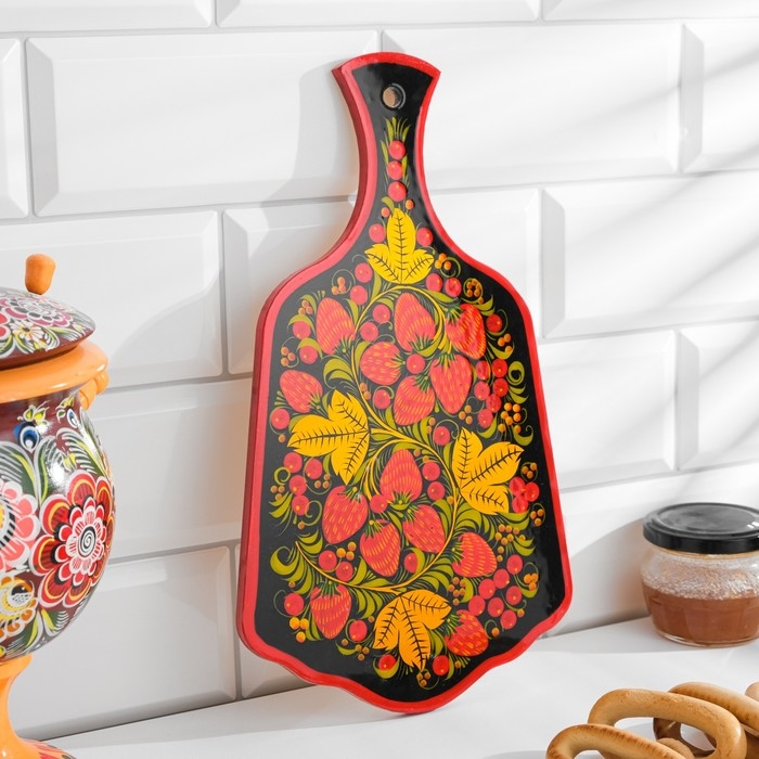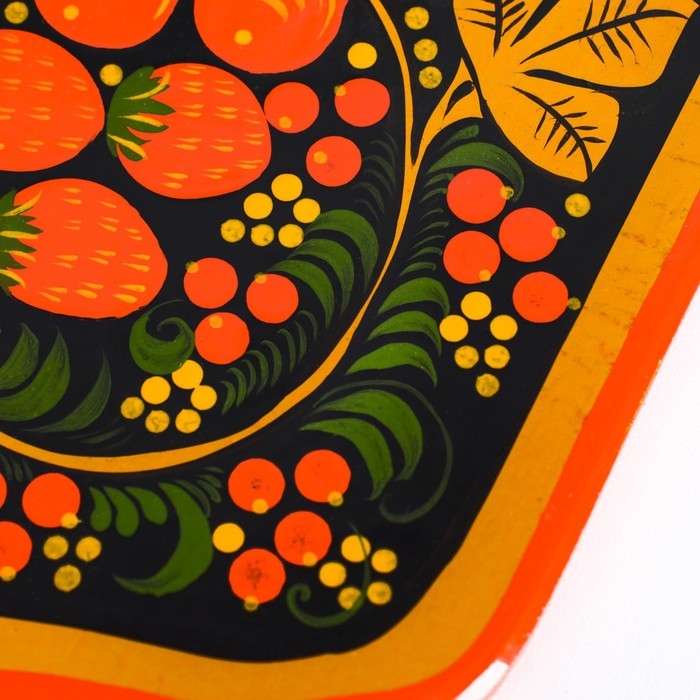 Традиционные элементы Хохломы — ягоды рябины и земляники, цветы и листья, птицы, рыбы и звери.