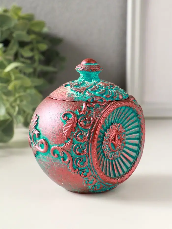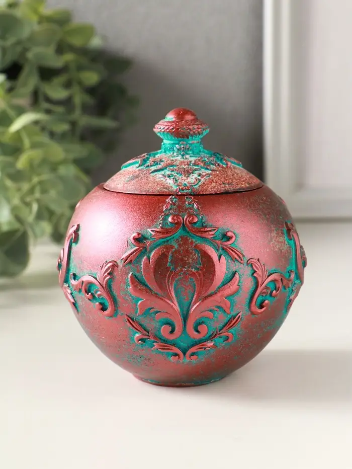 Шкатулка для украшений с крышкой «Флоренция», 10×9 см, гипс, окисленная медь