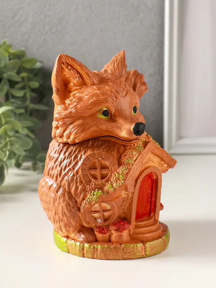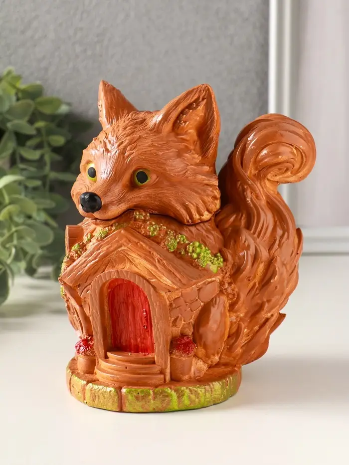 Шкатулка для украшений с крышкой «Лисичка Теремок», 15×10 см, гипс, рыжий