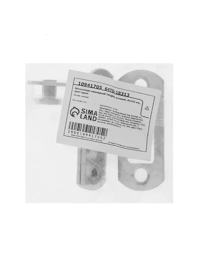 Шпингалет накладной ТУНДРА, угловой, 41×32 мм, цвет хром