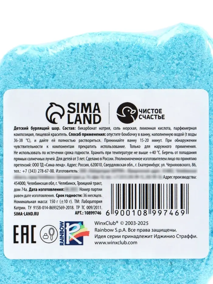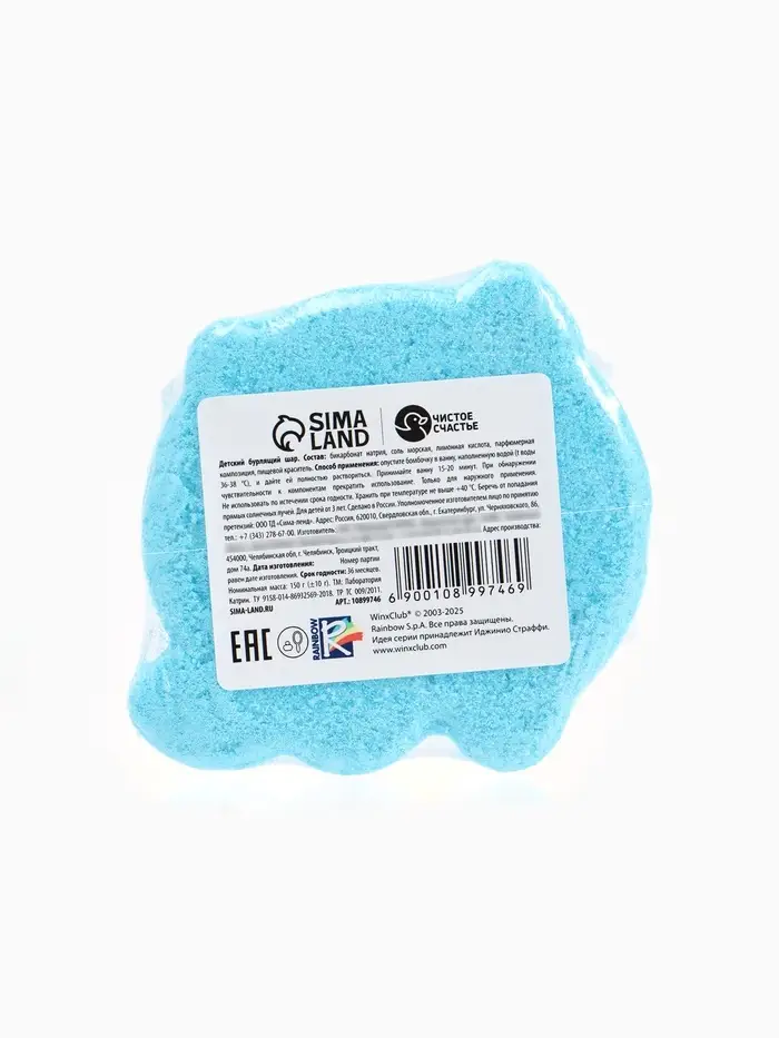 Бомбочка для ванны формовая детская, голубая, 150 г, Винкс