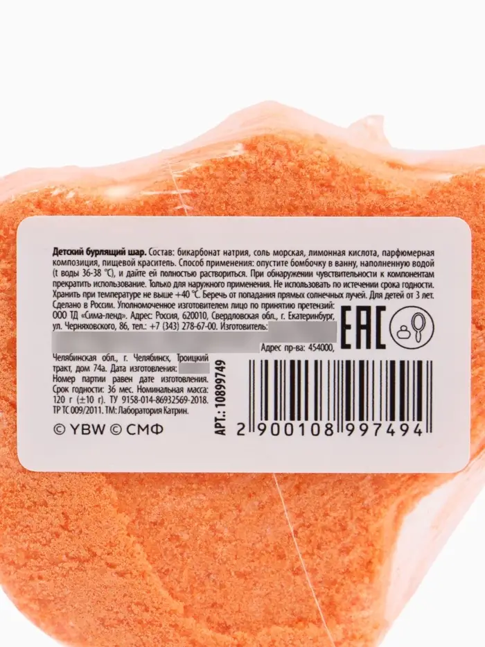 Бомбочка для ванны формовая детская, 120 г, Чебурашка