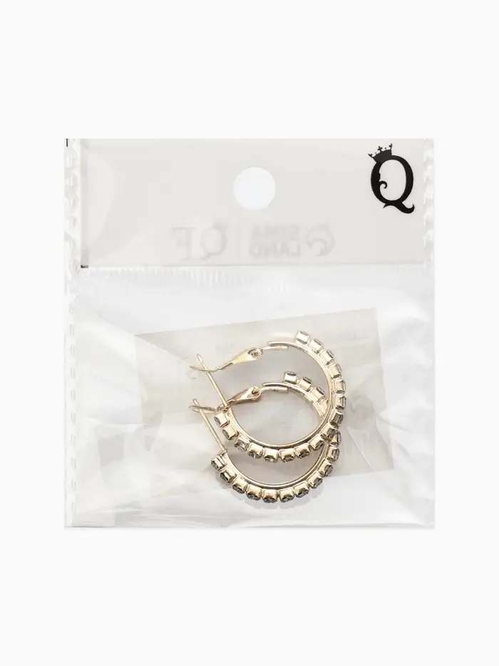 Серьги-кольца со стразами d=2.5 см, белые в золоте
