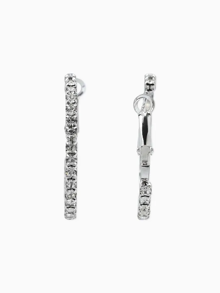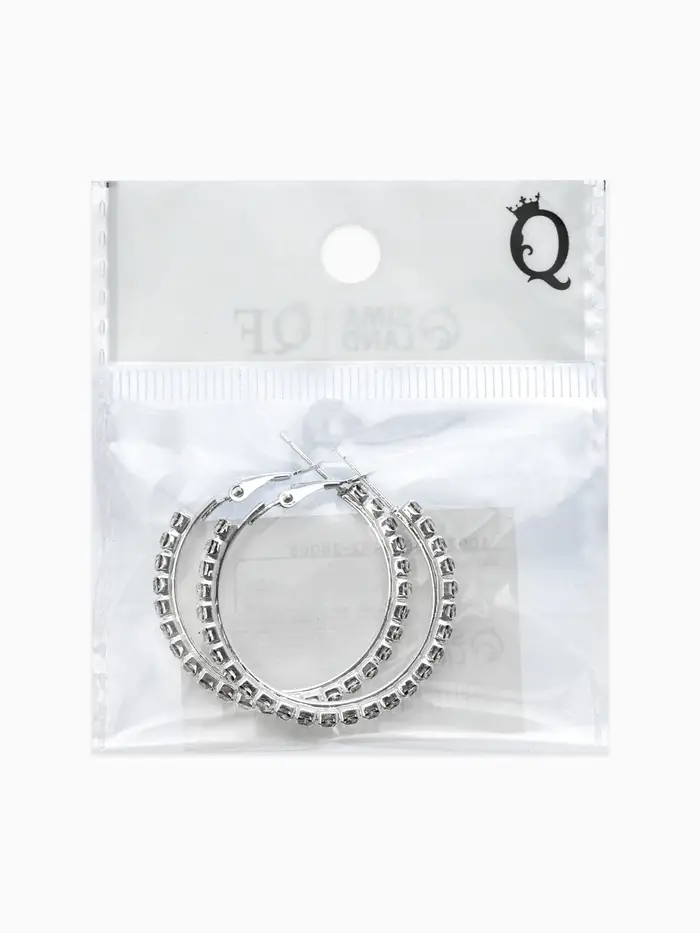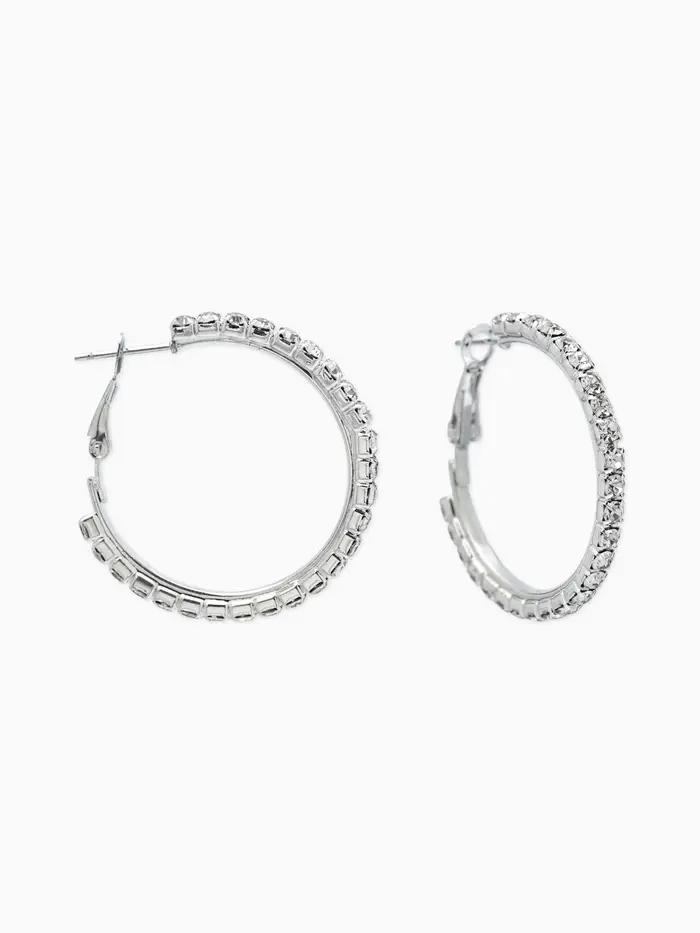 Серьги-кольца со стразами d=3.5 см, белые в серебре