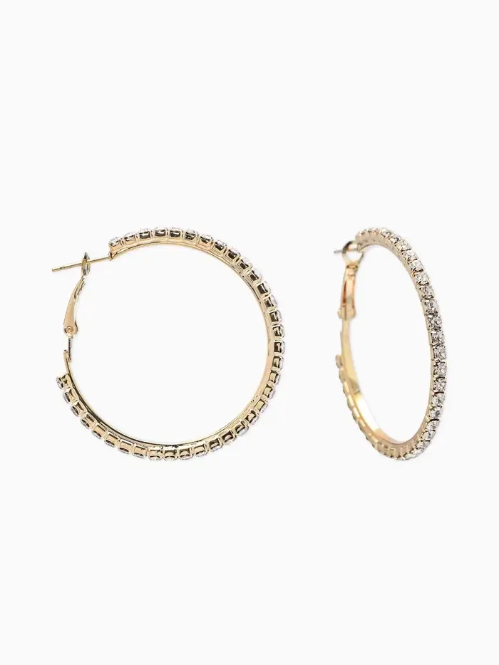 Совершенный союз формы и блеска! Кольцевидные серьги со стразами представляют собой ультрамодный аксессуар, подходящий для вечернего выхода или важного мероприятия. Кольца большого диаметра — 4,5 сантиметра — наделены невероятной энергией, способной преобразить любое событие.