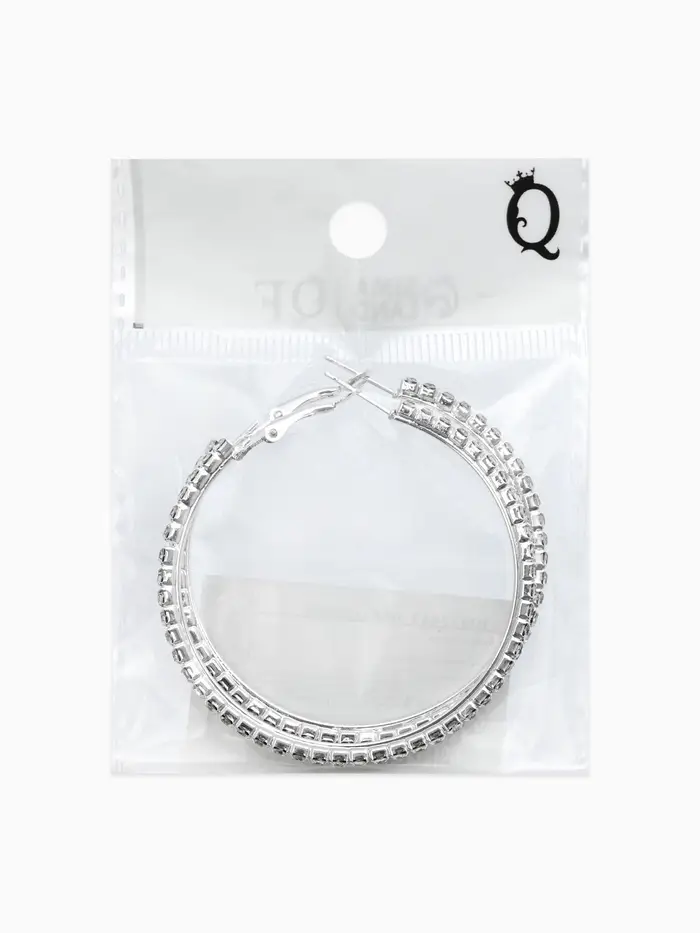 Серьги-кольца со стразами d=5.5 см, белые в серебре