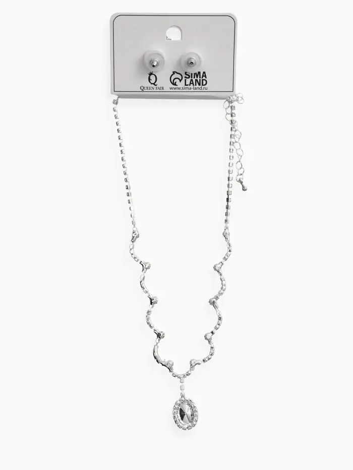 Набор 2 предмета: серьги, колье «Вечерний шик» капля ажурная, белый в серебре