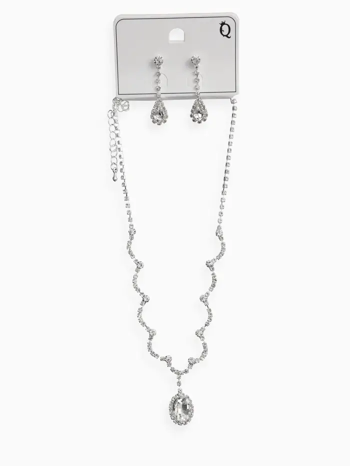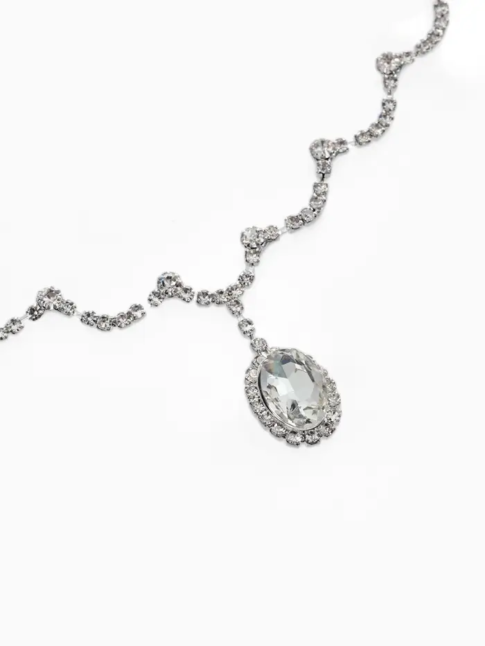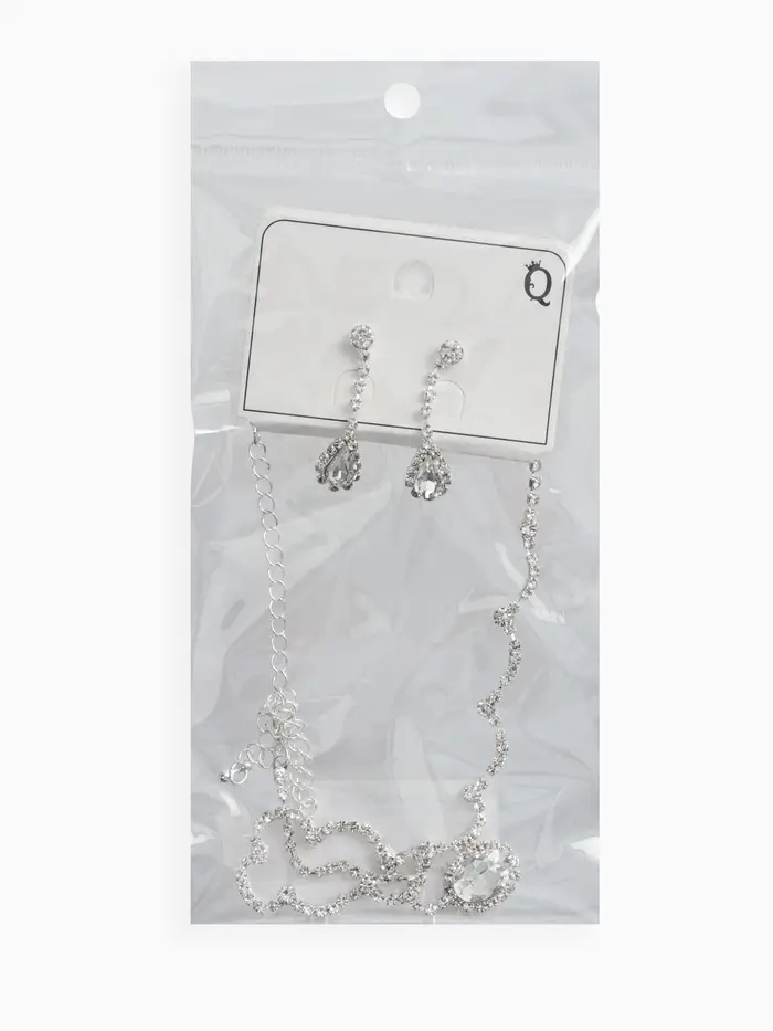 Эффектный и универсальный набор украшений, созданный для особых случаев. Сережки и колье «Вечерний шик» воплотили в себе элегантность и роскошь белого цвета, переливающегося стразами, заключенными в серебристые элементы декора.