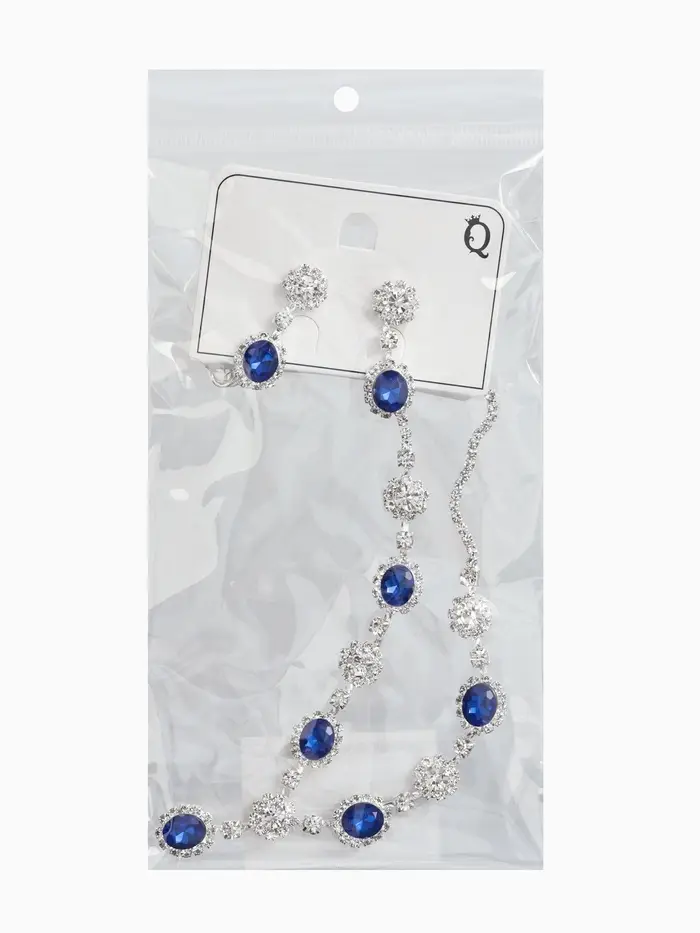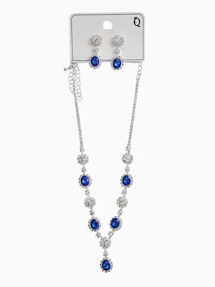 Набор 2 предмета: серьги, колье «Вечерний шик. Овал», бело-ярко-синий в серебре