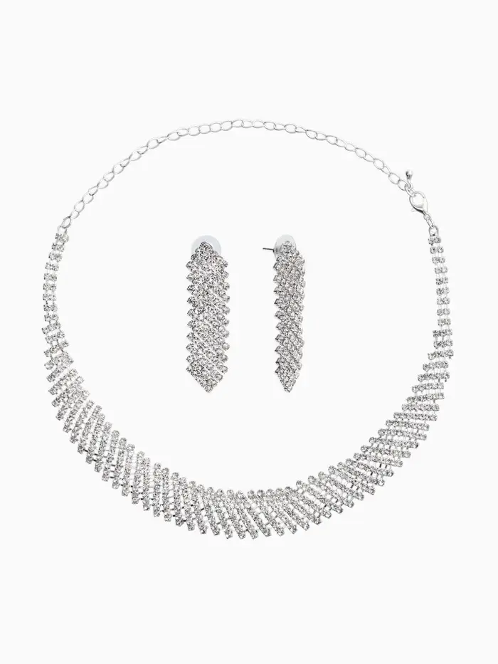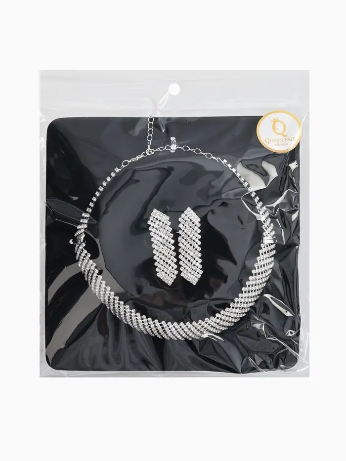 Набор 2 предмета: серьги, колье со стразами «Лёд», d=13.5 см, белый в серебре