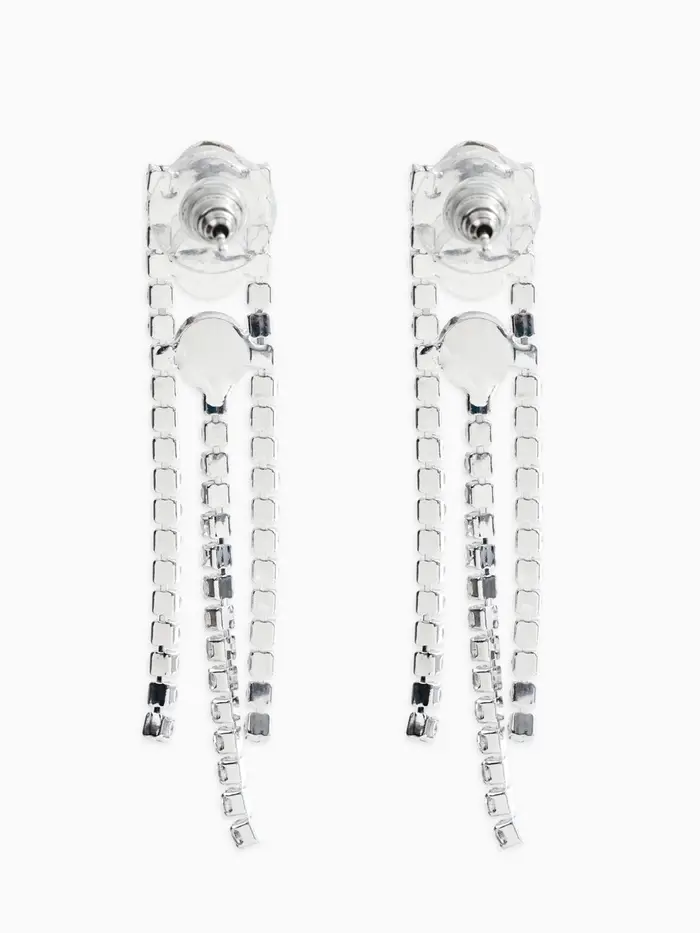 - Щедрое применение: Обилие страз на колье и серьгах эффективно привлекает внимание, подчеркивая шею и зону декольте, мгновенно привлекая интерес собеседников.
