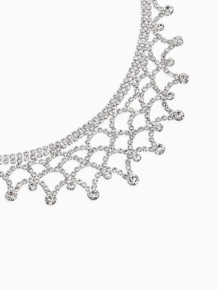 Набор 2 предмета: серьги, колье со стразами «Лёд. Паутина», d=13.5 см, белый в серебре