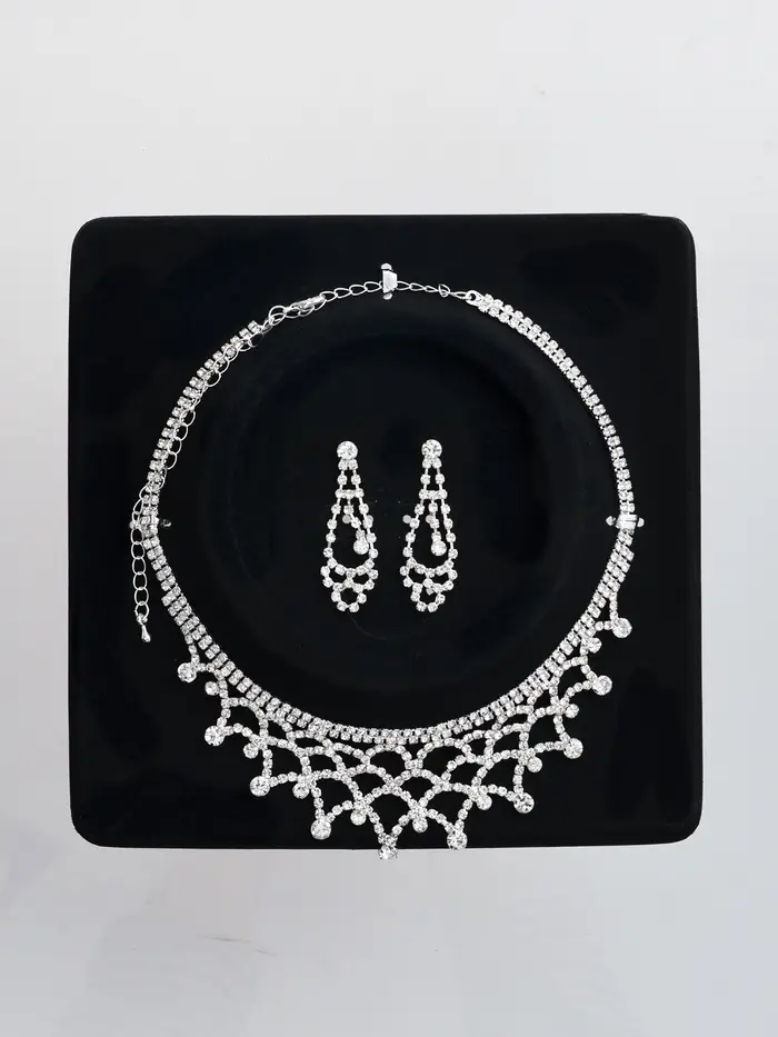 - Объём и стиль: Декоративные элементы равномерно распределены по длине колье и размеру серег, обеспечивая гармоничное сочетание формы и содержания.