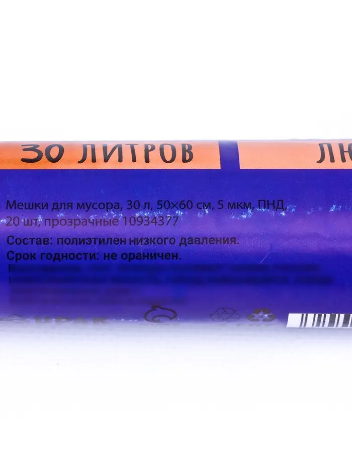 Мешки для мусора, 30 л, 50×60 см, 5 мкм, ПНД, 20 шт., прозрачные, в рулоне