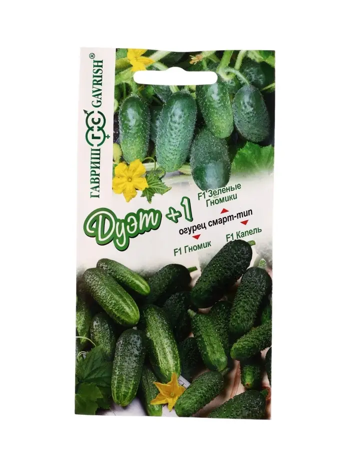 Семена Огурец Зеленые гномики F1 10 шт.+Гномик F1 10 шт.+Капель F1 10 шт. серия Дуэт+1