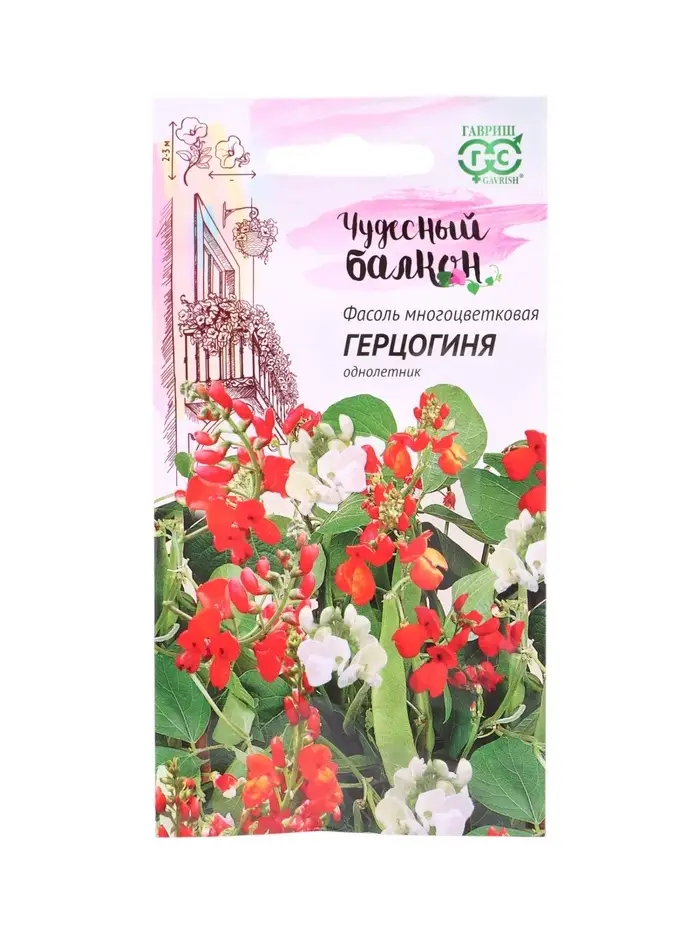 Семена цветов Фасоль декоративная (Тур. бобы) Герцогиня 5 шт серия Чудесный балкон
