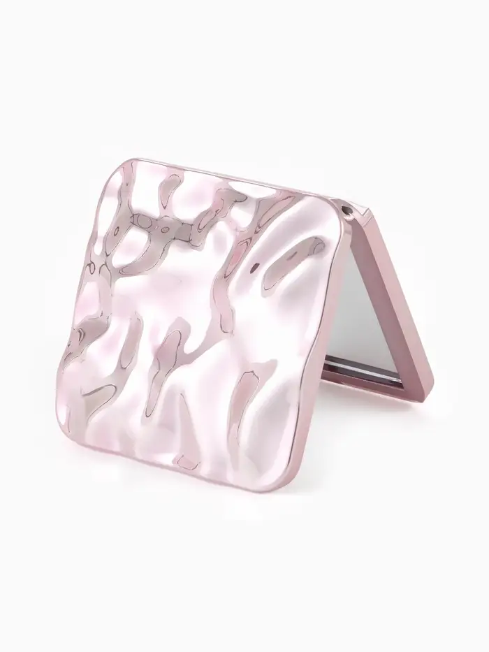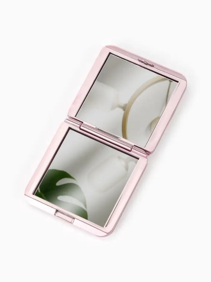 Зеркало складное квадрат (2) с/увел ВОЛНЫ 7,5см пластик розовый пакет QF