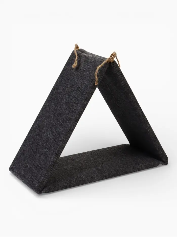 Когтеточка — компактная трёхсекционная модель высотой 44 см с ковролиновым покрытием. Серый цвет, отсутствие рисунка и строгая форма делают её нейтральным элементом интерьера, а продуманная геометрия обеспечивает три ключевые зоны: для царапания, лежания и наблюдения.