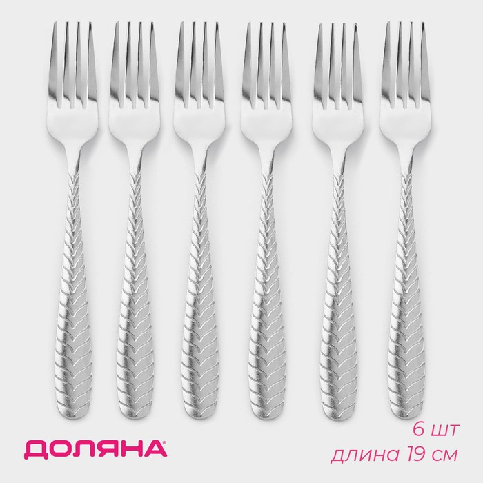 Набор вилок столовых из нержавеющей стали Доляна «Колосок», h=19 см, 6 шт, цвет серебряный