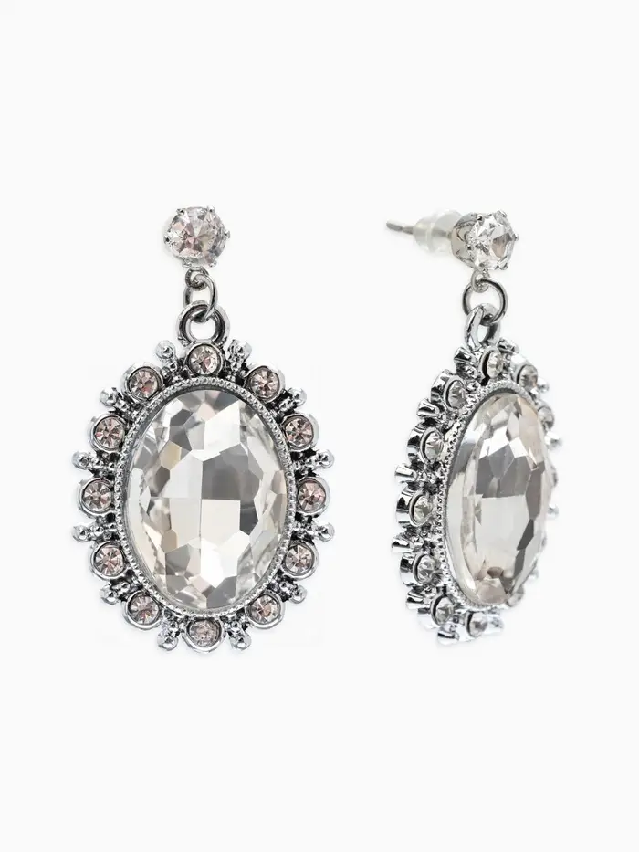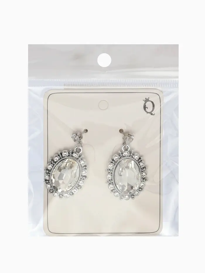 Серьги со стразами "Овал грань", цвет белый в серебре