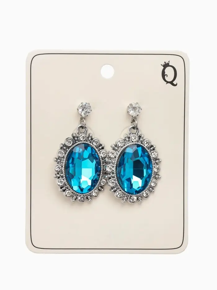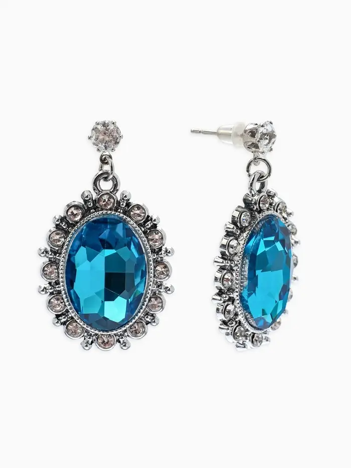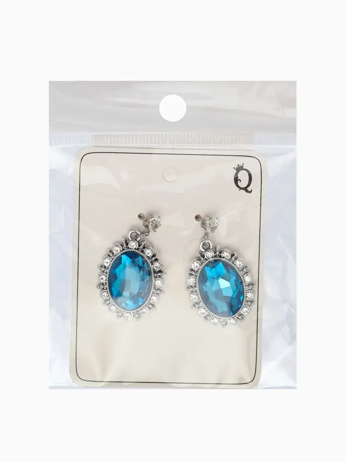Серьги со стразами "Овал грань", цвет голубой в серебре