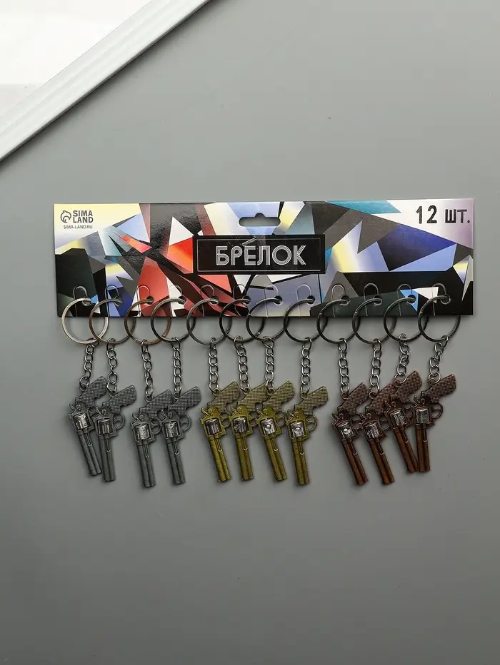 Брелок металл "Револьвер" крутится барабан МИКС 5,8х2,8х0,9 см