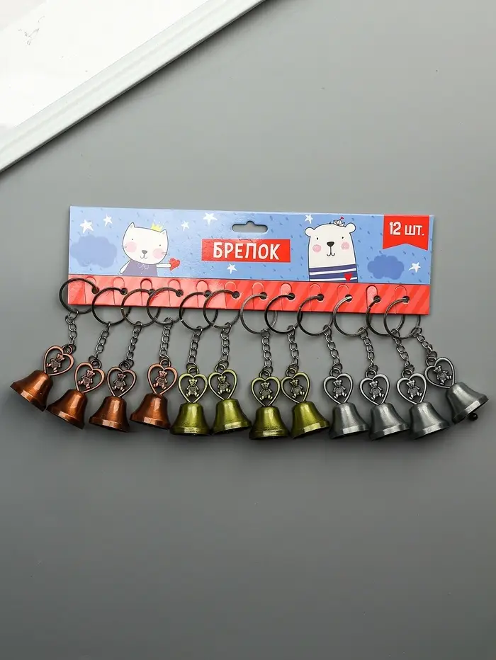 Брелок металл "Колокольчик - медвежонок в сердце" МИКС 5х2,8х2,8 см