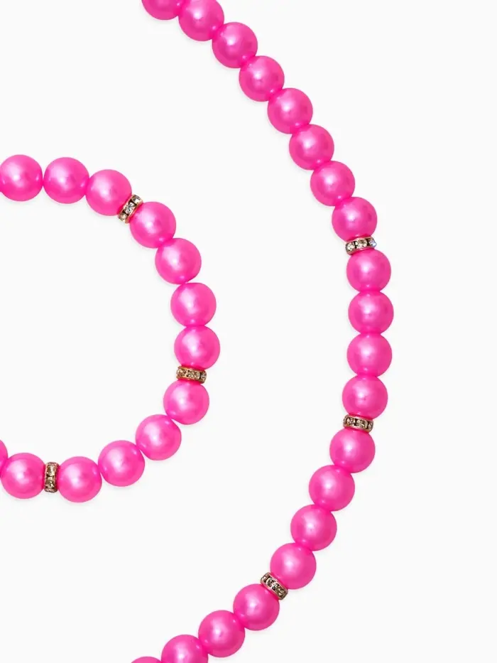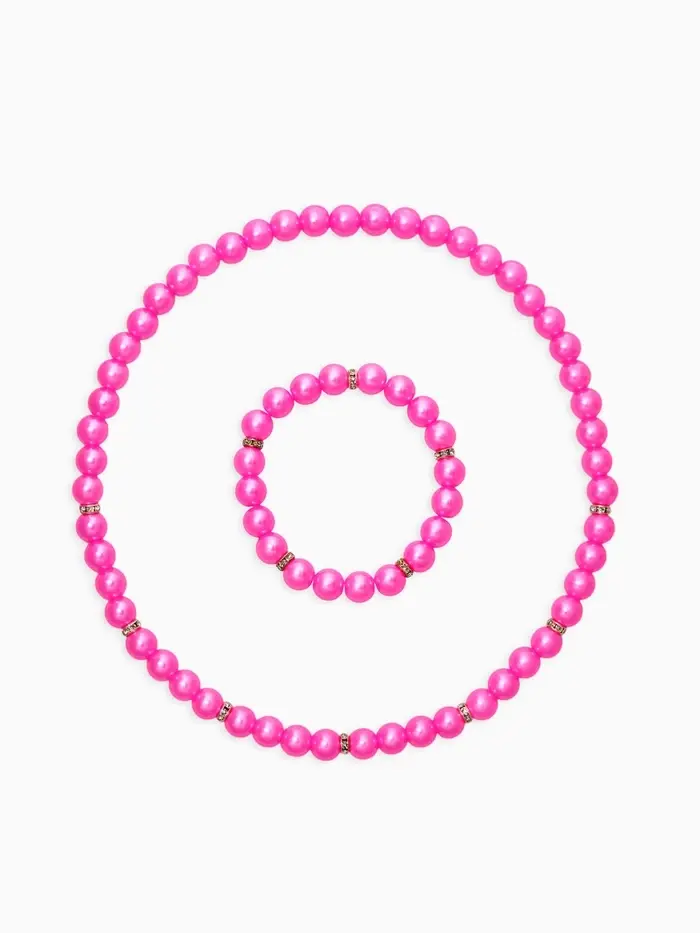 Набор детский «Выбражулька» 2 предмета: бусы, браслет, жемчуг стразы, цвет ярко-розовый