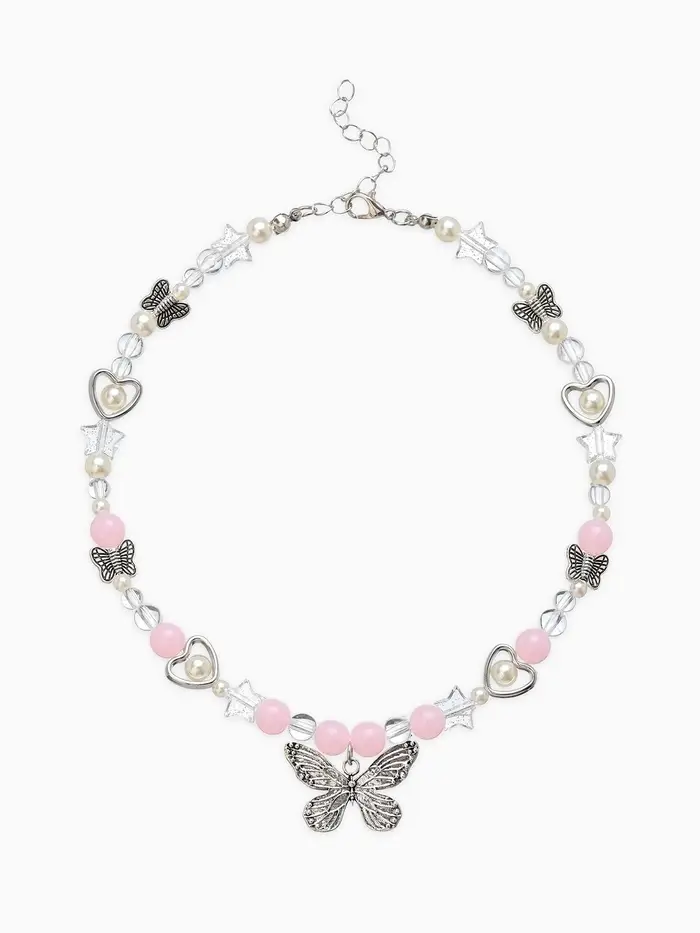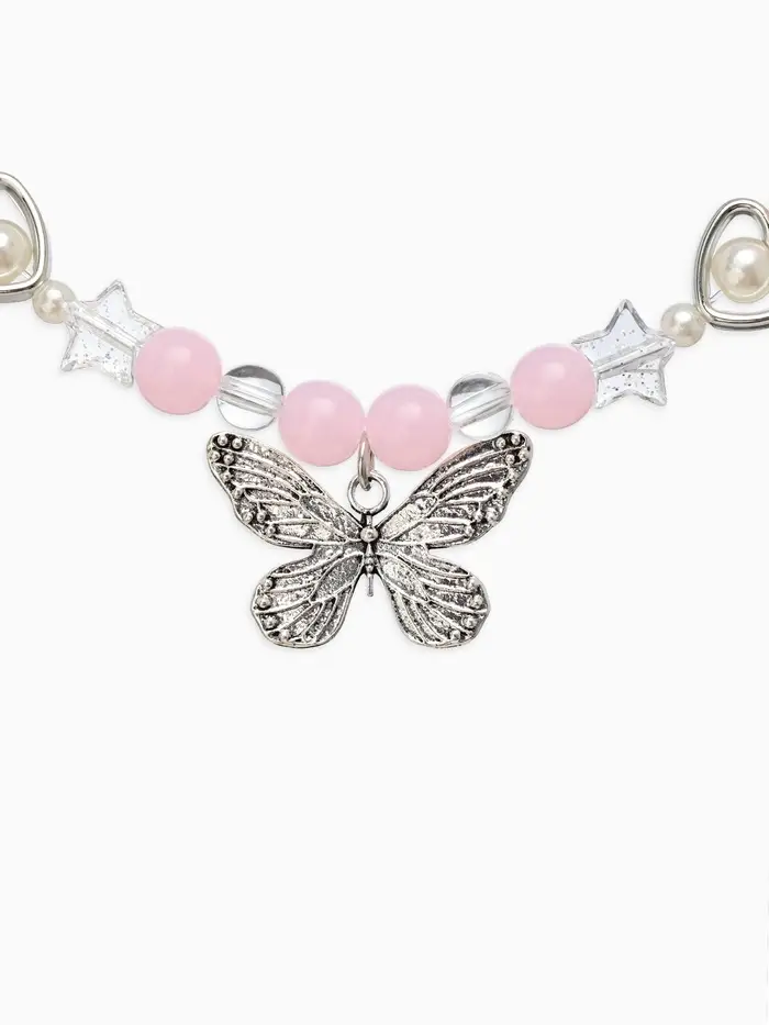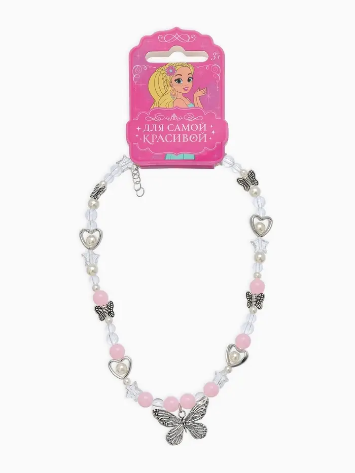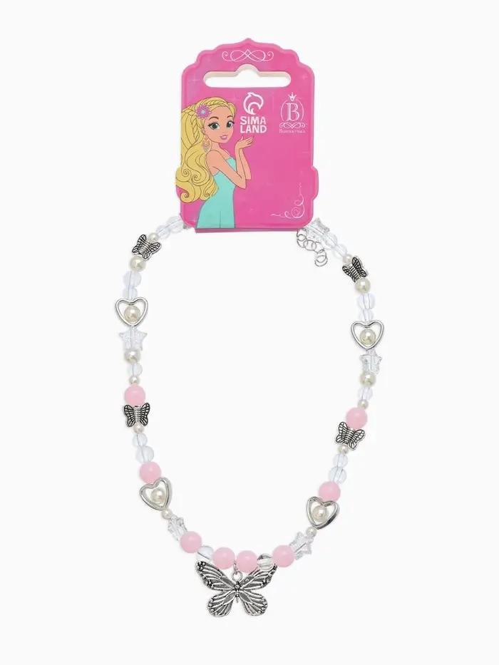 Бусы детские "Выбражулька" стиль, бабочка, цвет бело-розовый в серебре