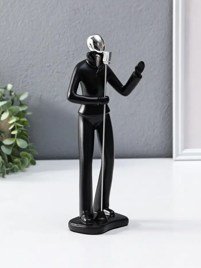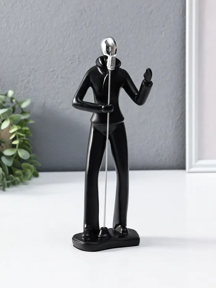 Сувенир полистоун "Вокалист" чёрный с серебром 6,5х10х26,5 см