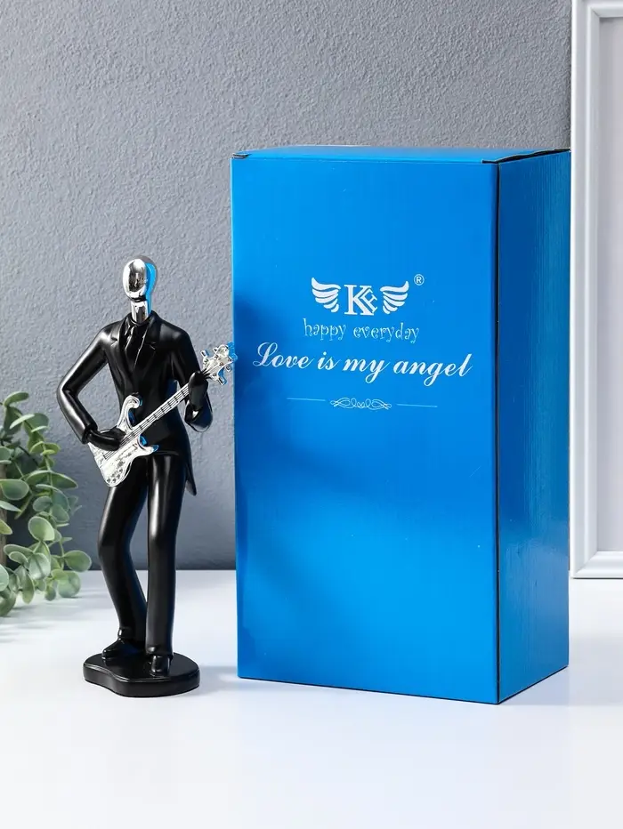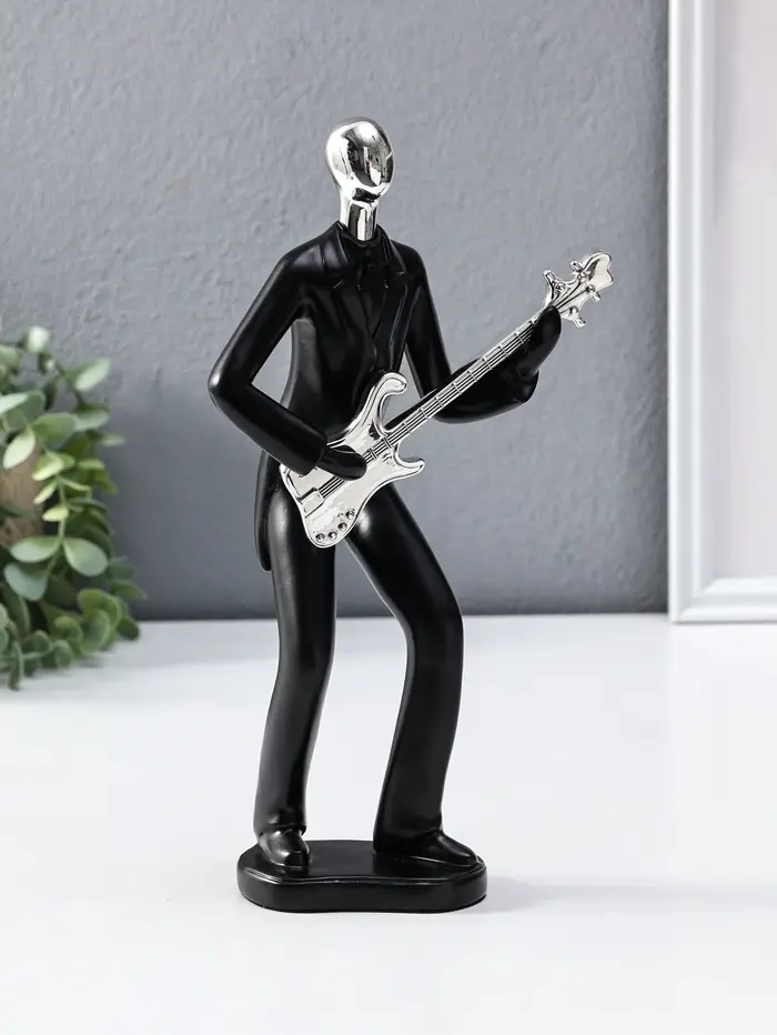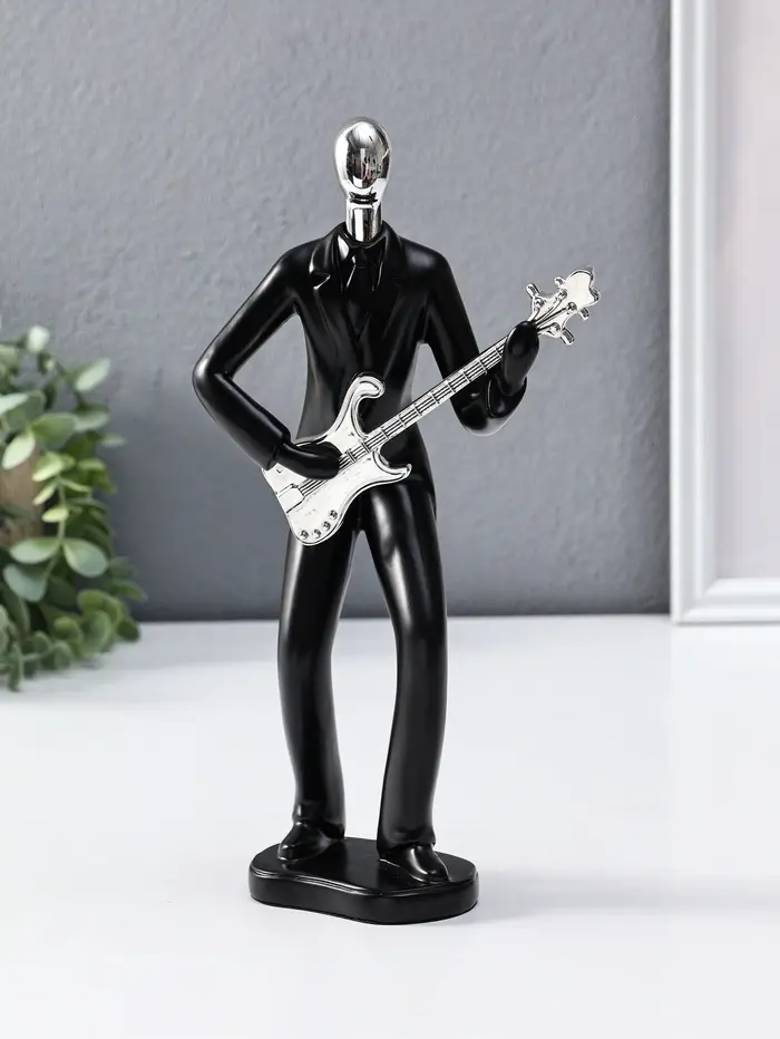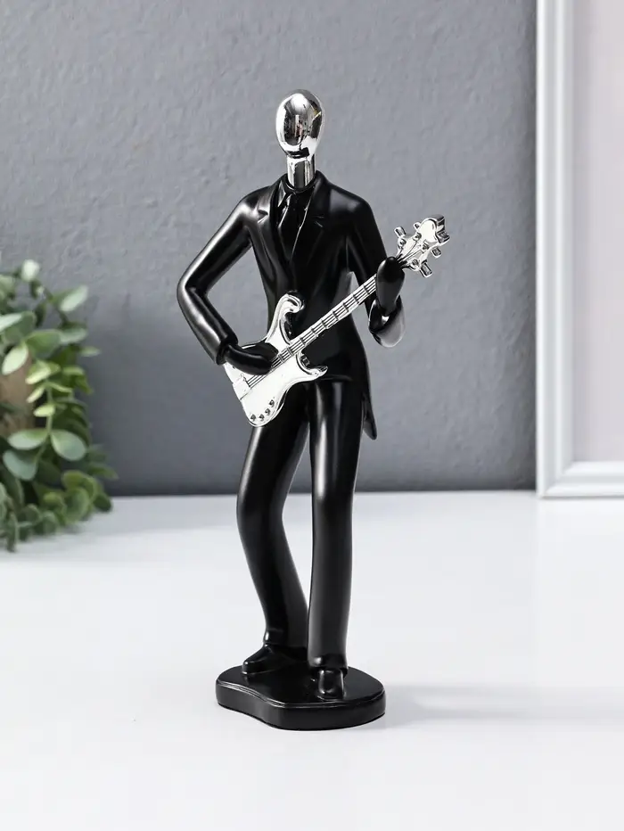 Сувенир полистоун "Гитарист" чёрный с серебром 6,5х15,2х27,5 см