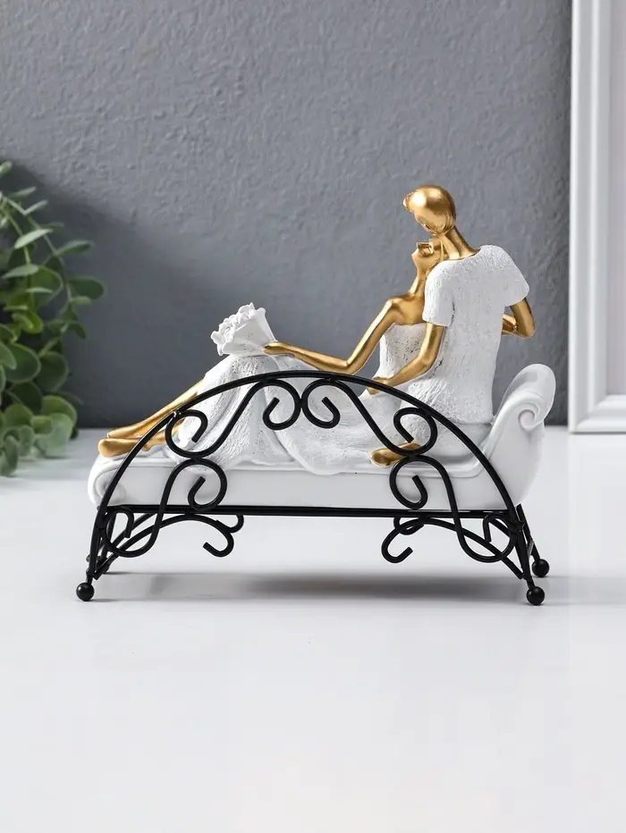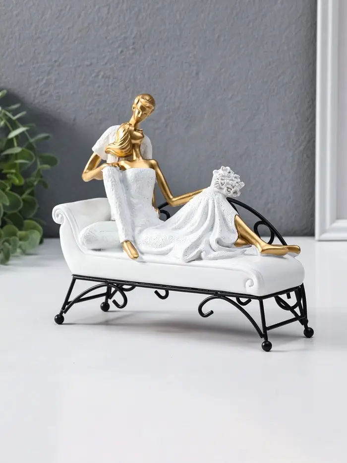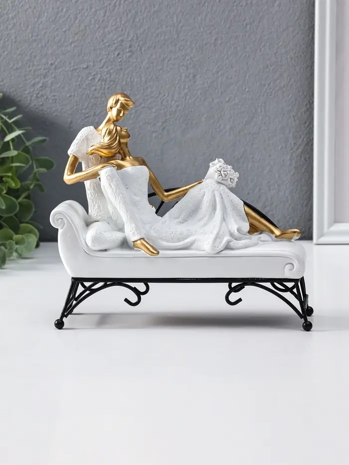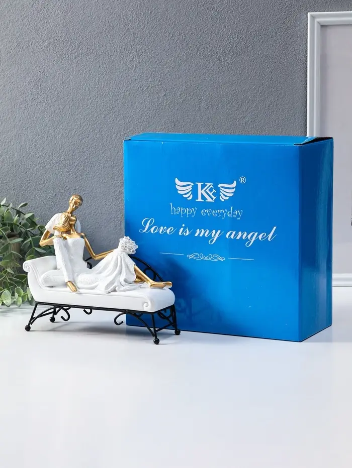 Сувенир полистоун "Парочка лежит на кушетке" бело-золотой 7х21,5х18,5 см