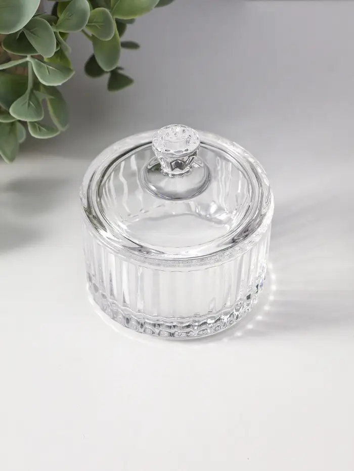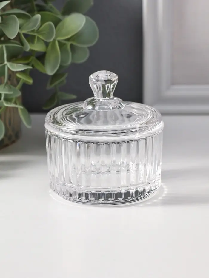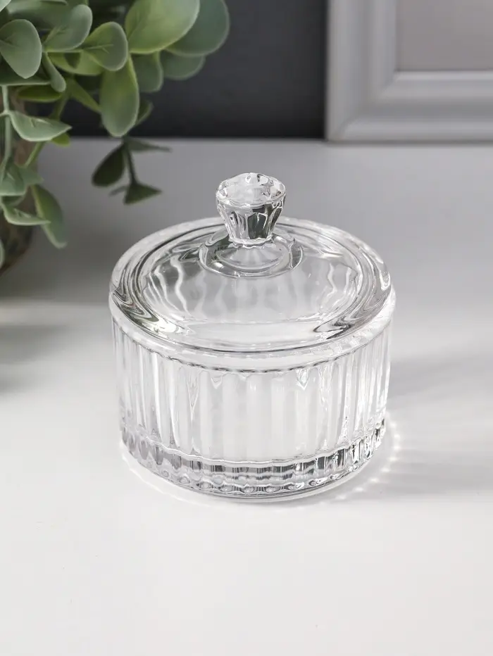 Шкатулка стекло "Полосы и бриллиант" прозрачная 6,5х6,5х7 см