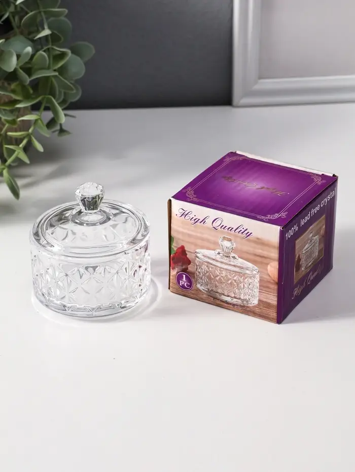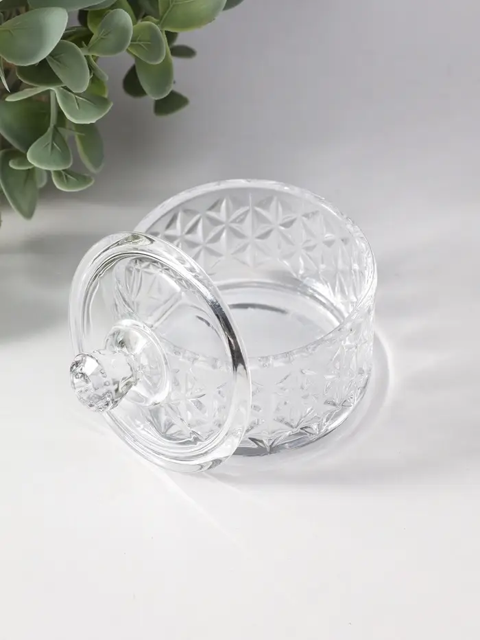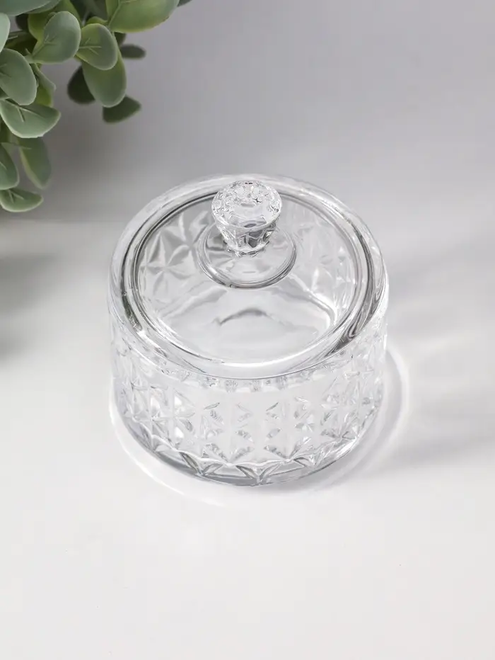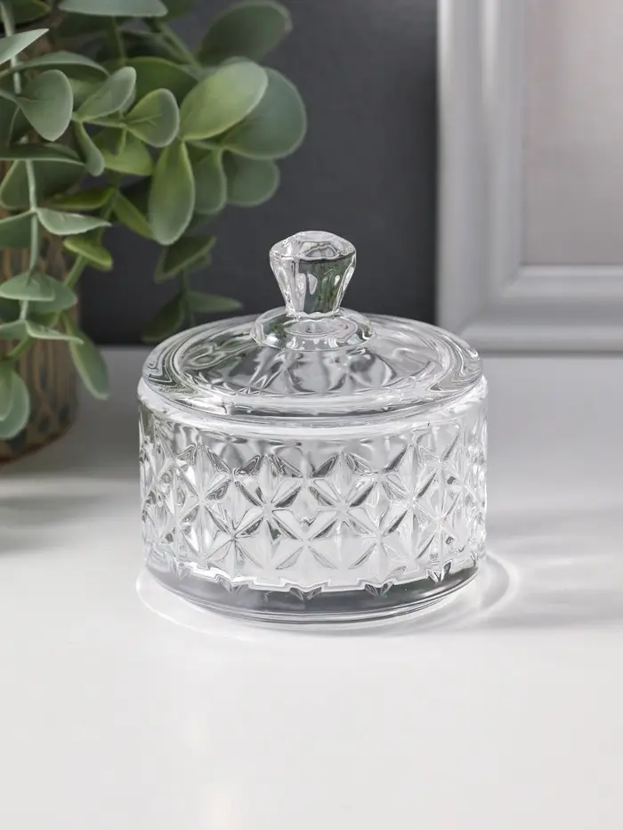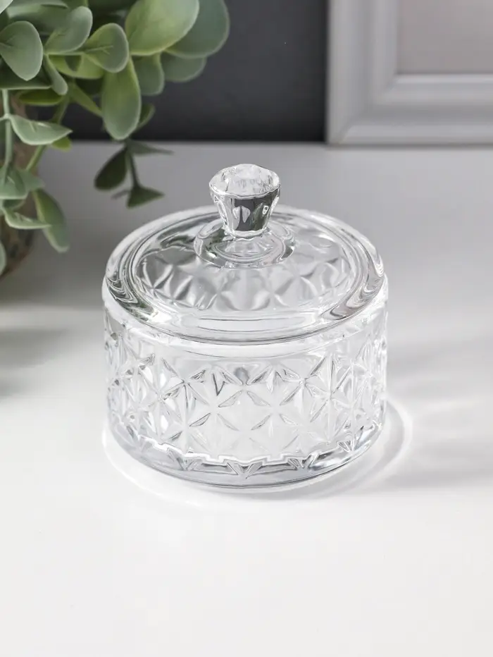 Шкатулка стекло "Ромбы и бриллиант" прозрачная 6,5х6,5х7 см