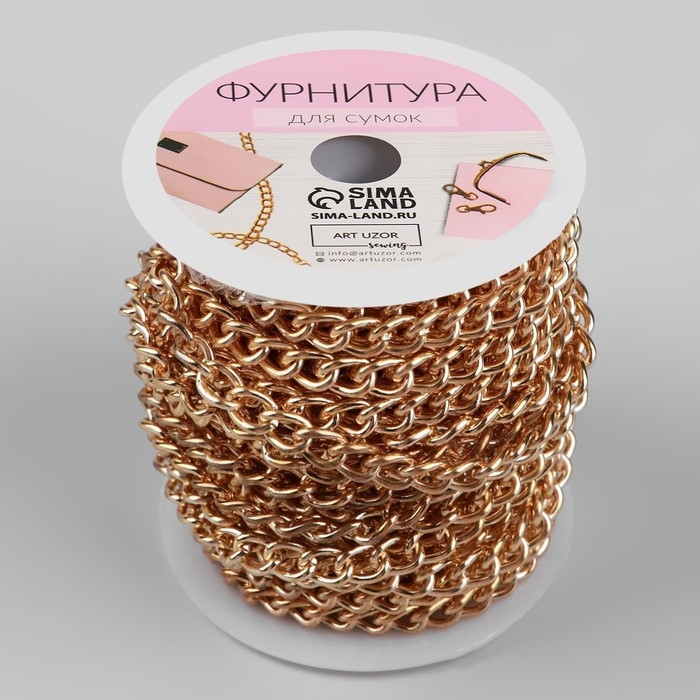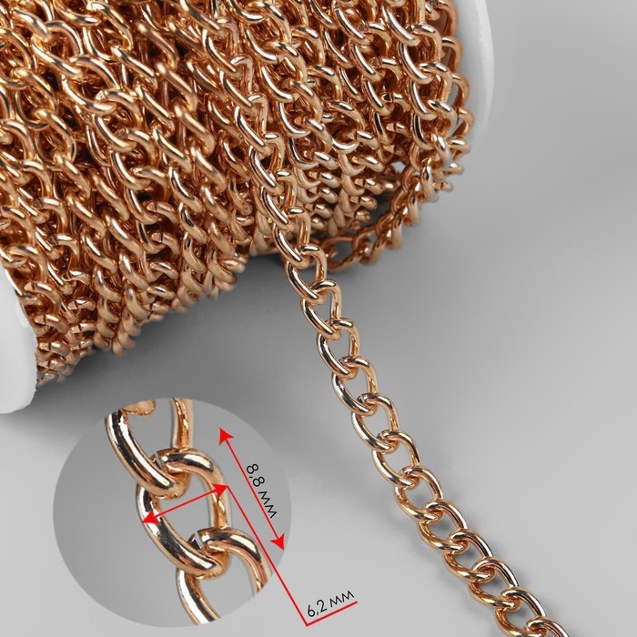 Цепочка для сумки, железная, 6,2 × 8,8 мм, 10 ± 0,5 м, цвет золотой