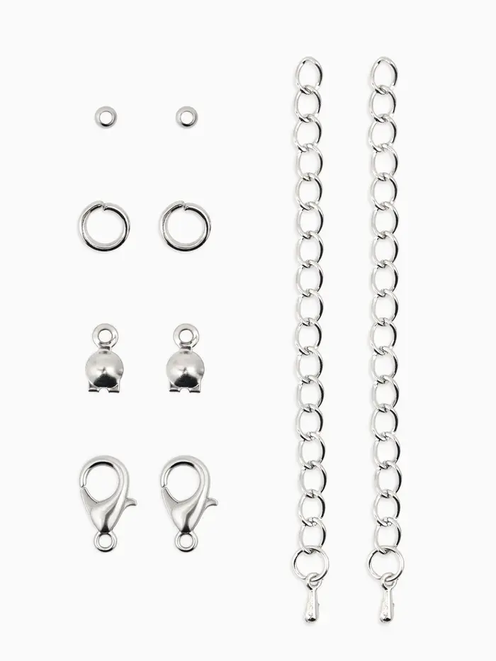Откройте мир творчества и создайте собственные неповторимые украшения с удобством и легкостью вместе с нашим уникальным набором фурнитуры. Комплектация набора представлена основными элементами, необходимыми для изготовления оригинальных украшений, такими как колечки, кримпы и цепочки. Выбранный цвет фурнитуры — стильный серебристый тон, придаст вашим произведениям особый шик и современность.