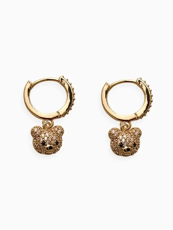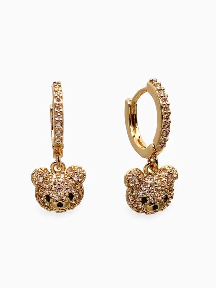 Серьги детские «Выбражулька. Мишка в стразах», 0.5×2.2 см, белые в золоте