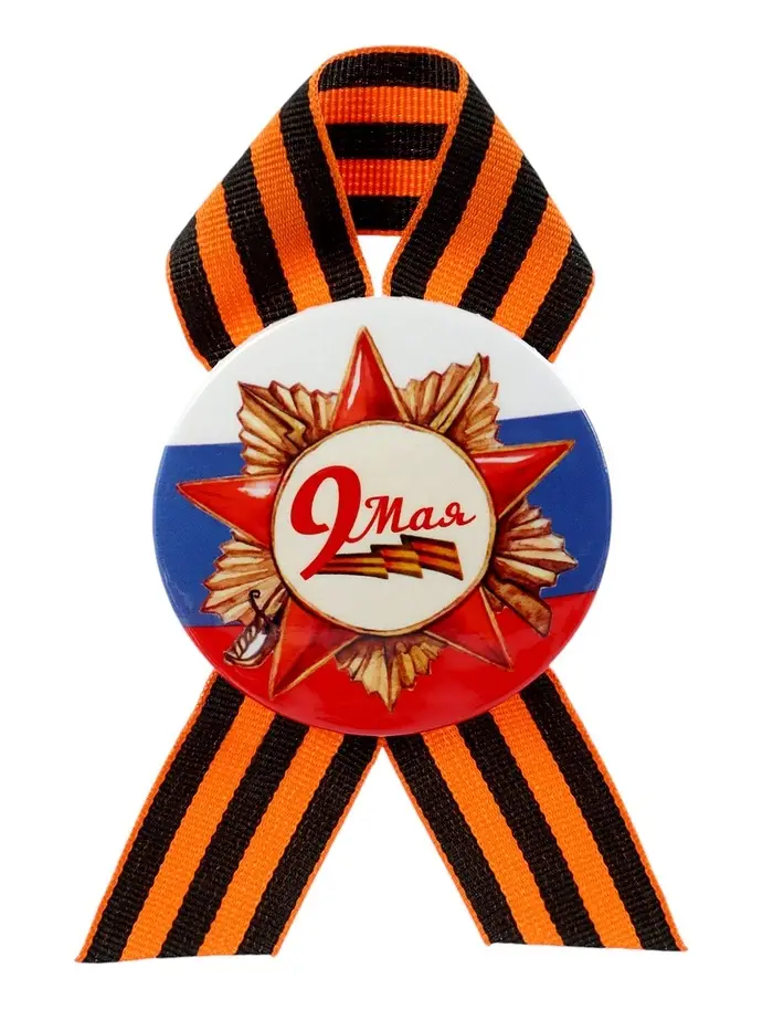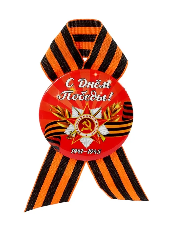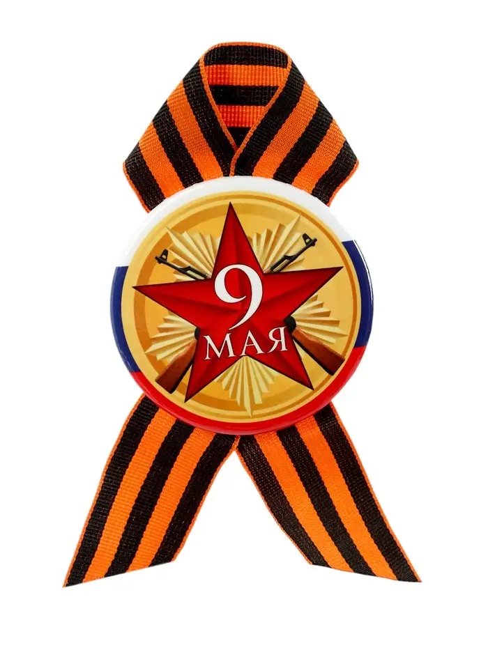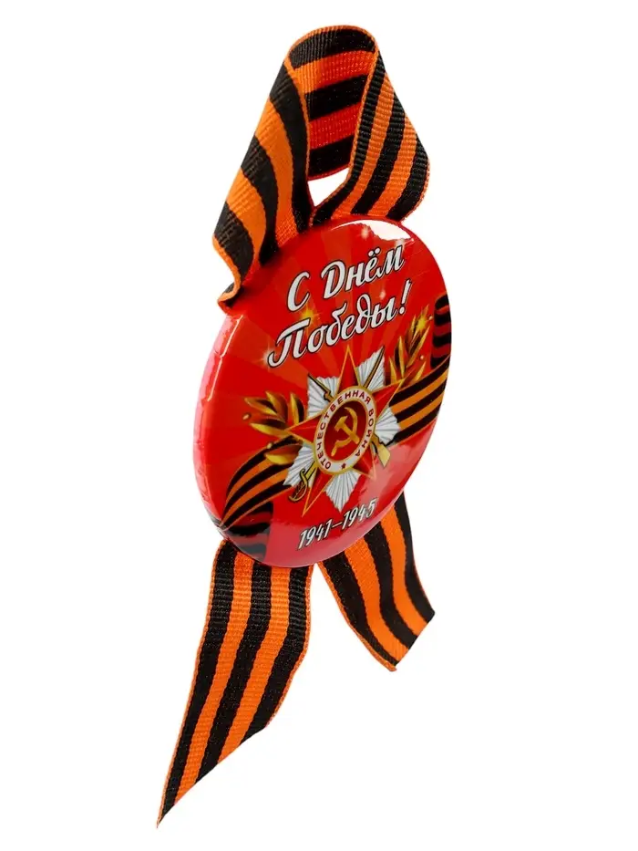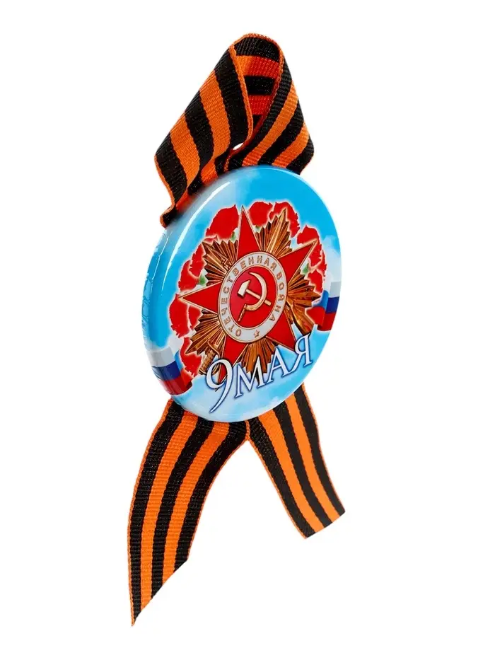 Значок закатной с георгиевской лентой «9 Мая», МИКС