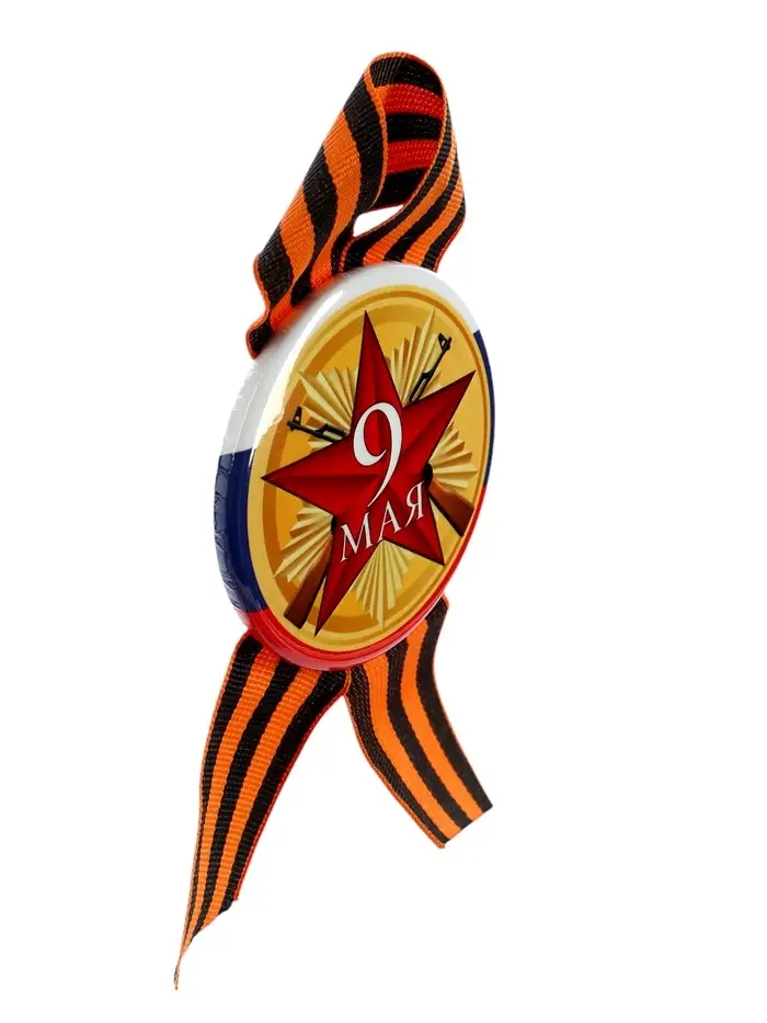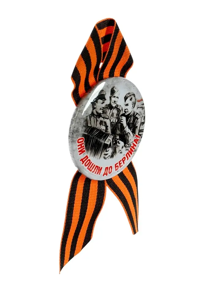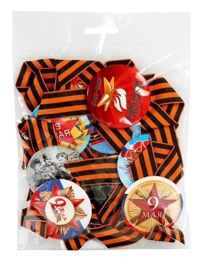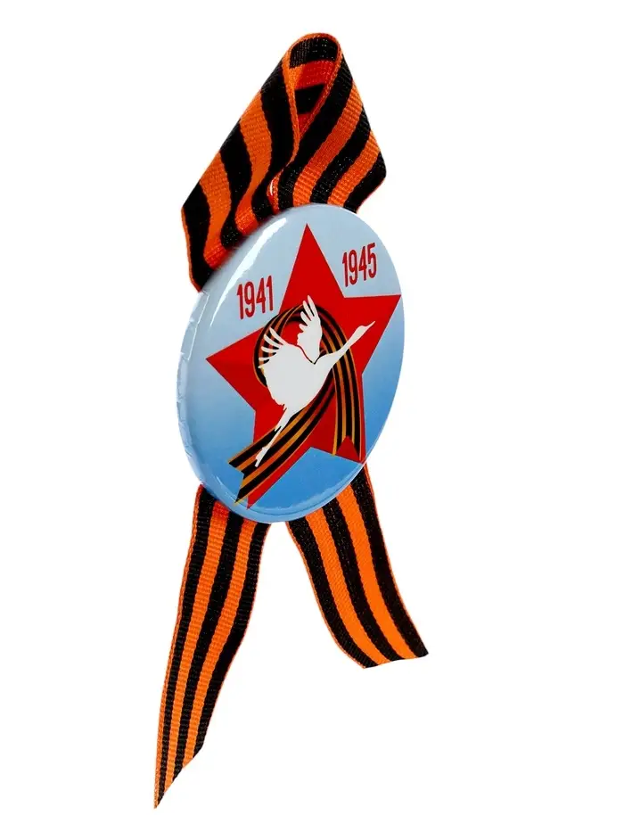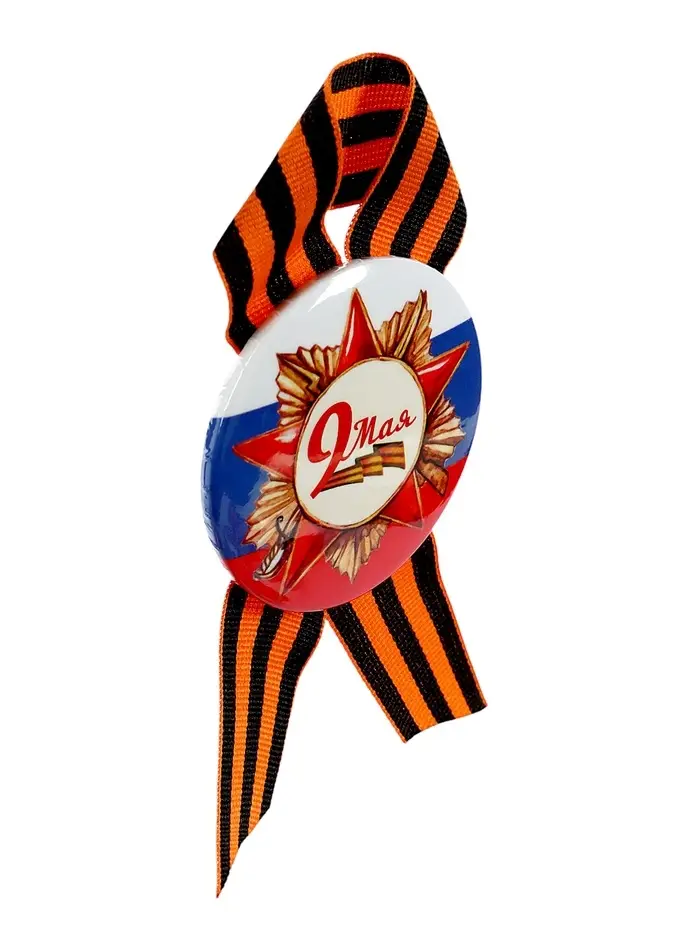 Значок закатной с георгиевской лентой «9 Мая», МИКС