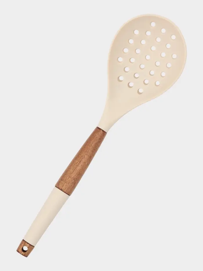 Шумовка с деревянной ручкой, силикон