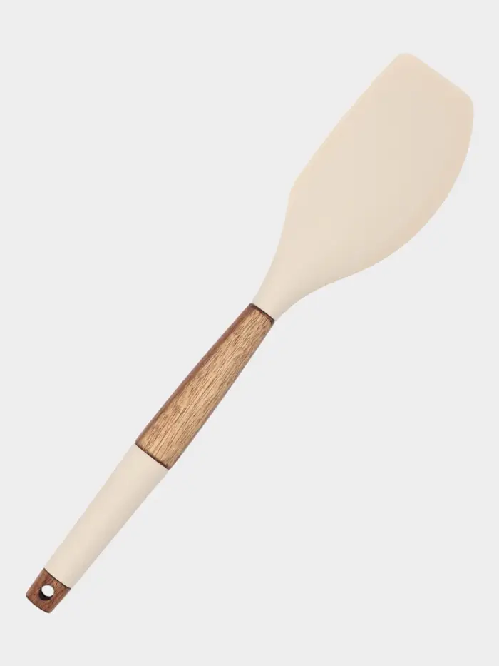 Лопатка кухонная с деревянной ручкой, скошенная, силикон