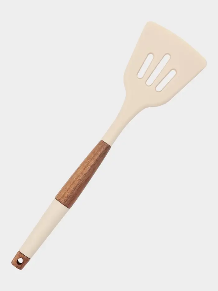 Лопатка кухонная с прорезями, с деревянной ручкой, силикон