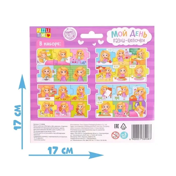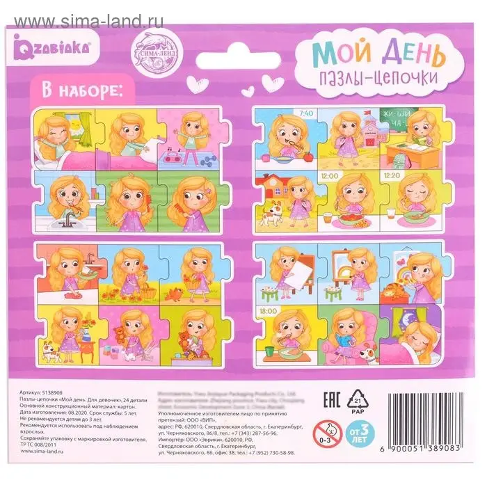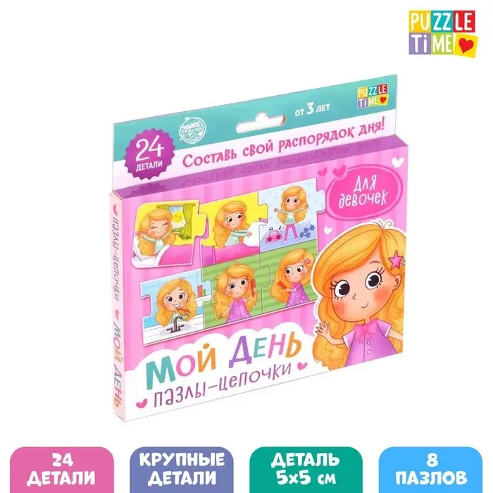Умные пазлы - цепочки «Мой день. Для девочек», 24 детали