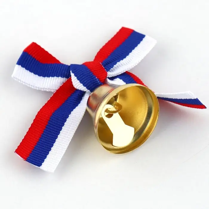 Колокольчик на булавке с бантом на выпускной, триколор, d = 2,6 см